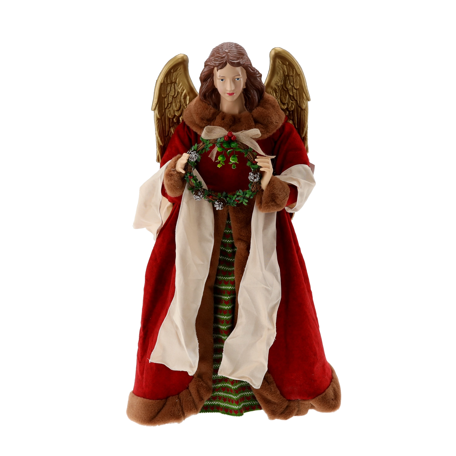 Velika angelska figura višine 90 cm v vsak prostor vnese praznično vzdušje. Bogato plastena oprava v rdečih, belih in zelenih tonih z mehkim krznom ter zlatimi krili deluje razkošno, medtem ko ročno poslikan obraz in dlani dekoraciji dodajajo živ izraz. Zaradi stabilne konstrukcije in nizke teže jo zlahka postavite na komodo, k jaslicam, na oder ali kot vrh božičnega drevesa.