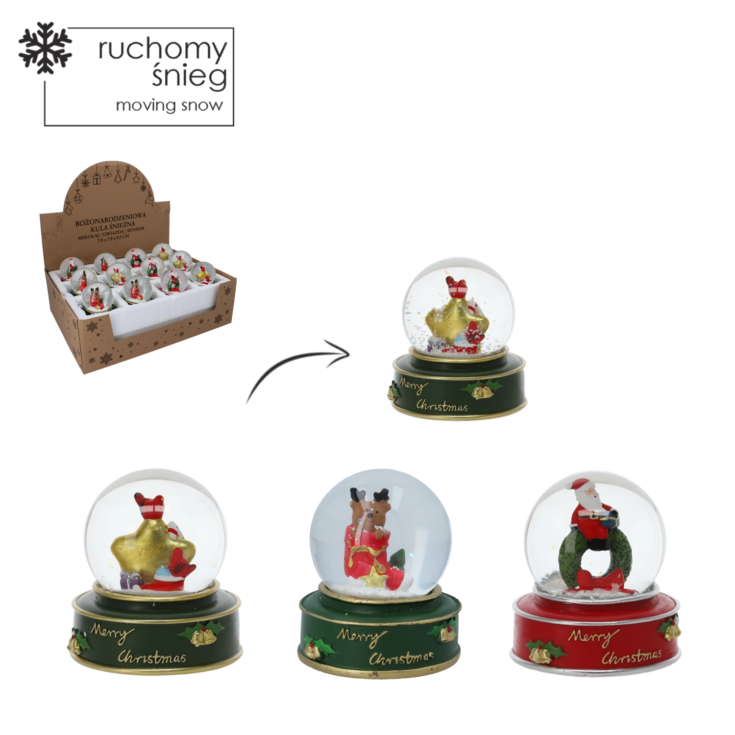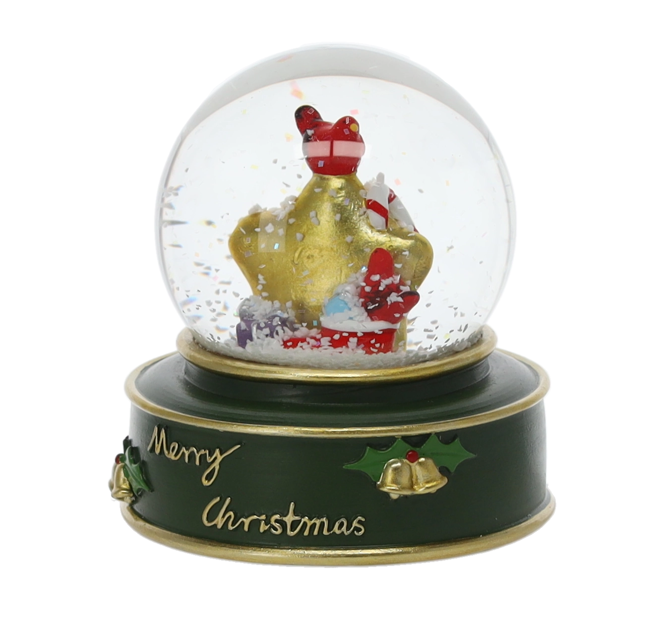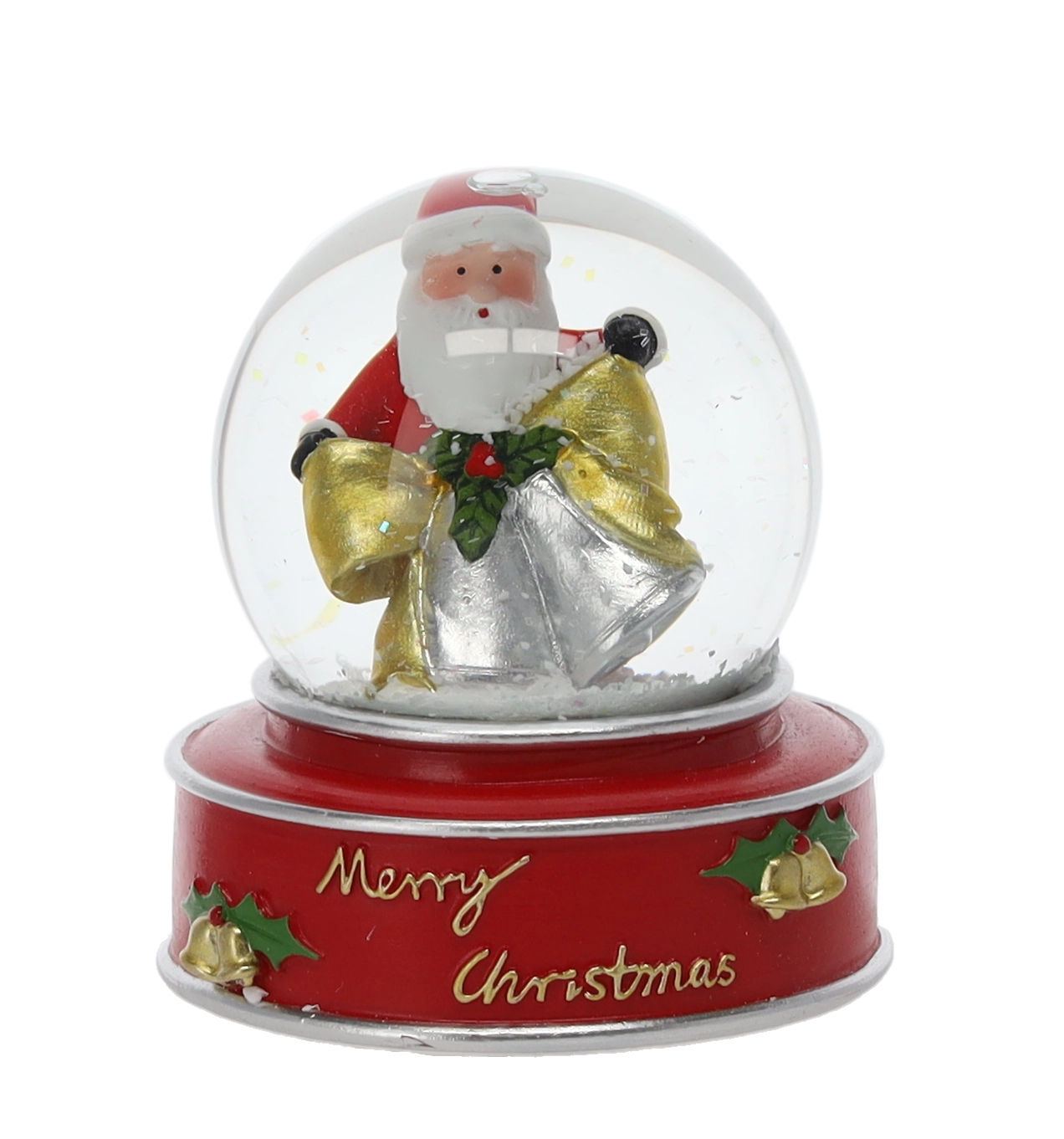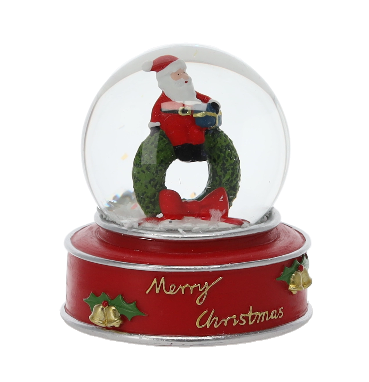 Stilska božična snežna krogla s stekleno kupolo in trdnim barvnim podstavkom z napisom »Merry Christmas« v vaš interier vnese takojšnje praznično vzdušje. Ko jo stresete, ustvari učinek padajočega snega, ki poudari podrobne figure Božička, zvezde ali jelena.