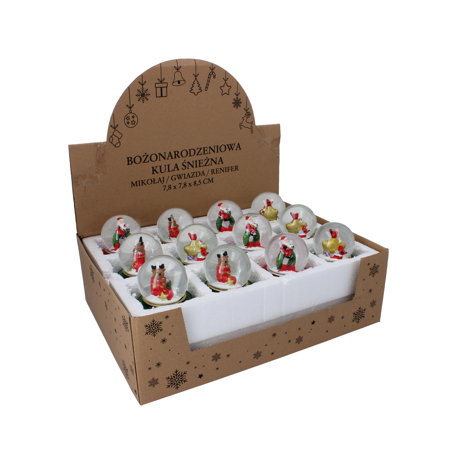 Kristalno jasna steklena kupola in čvrst podstavek z božičnimi detajli zagotavljata stabilnost, vzdržljivost in eleganten videz na policah in mizah.