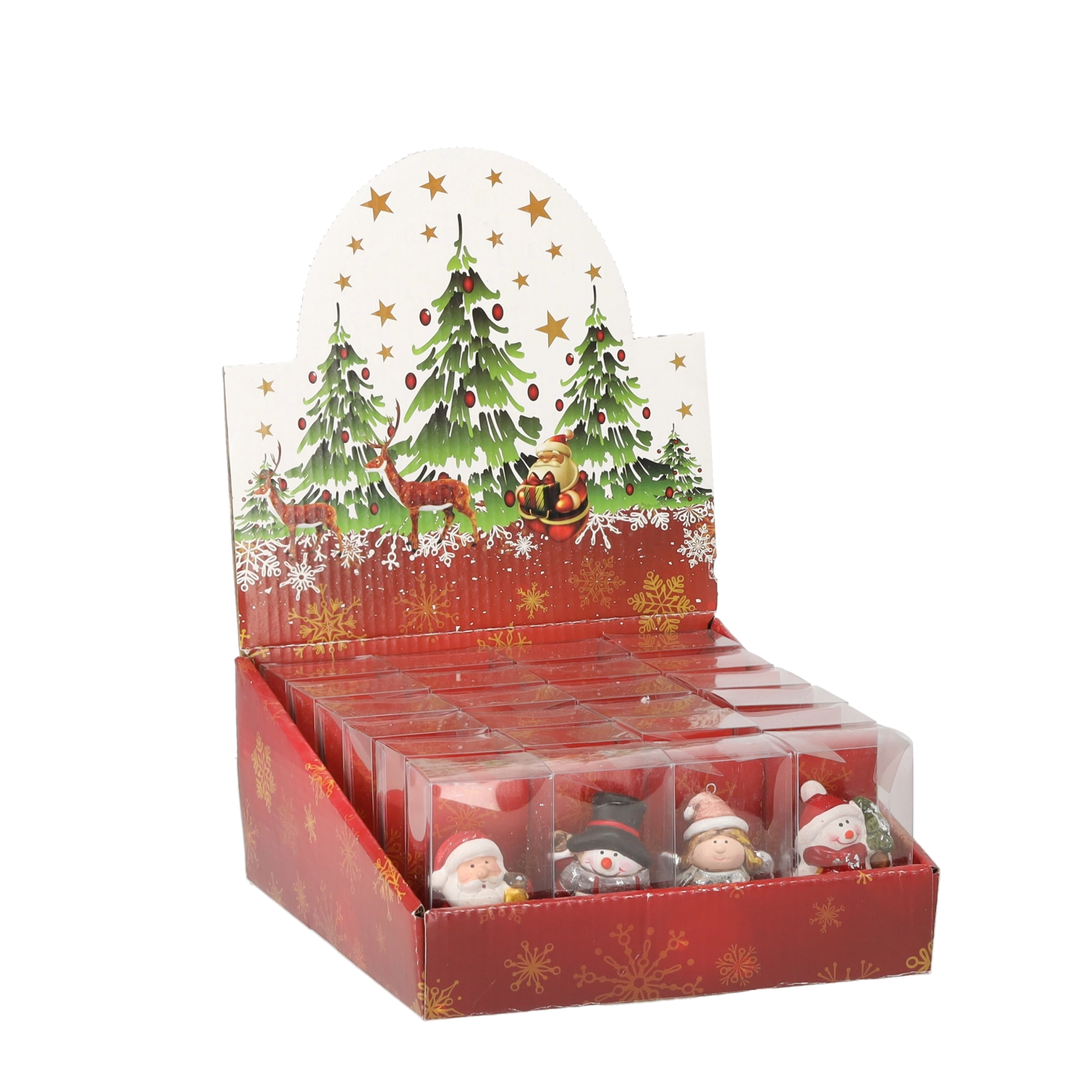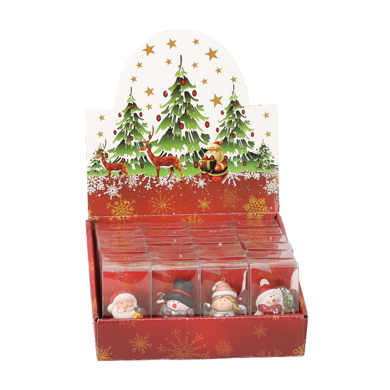 Vsaka figurica je skrbno poslikana z nežnimi detajli – od zlatega zvončka Miklavža do bleščečih snežnih učinkov, ki poudarijo božično vzdušje.