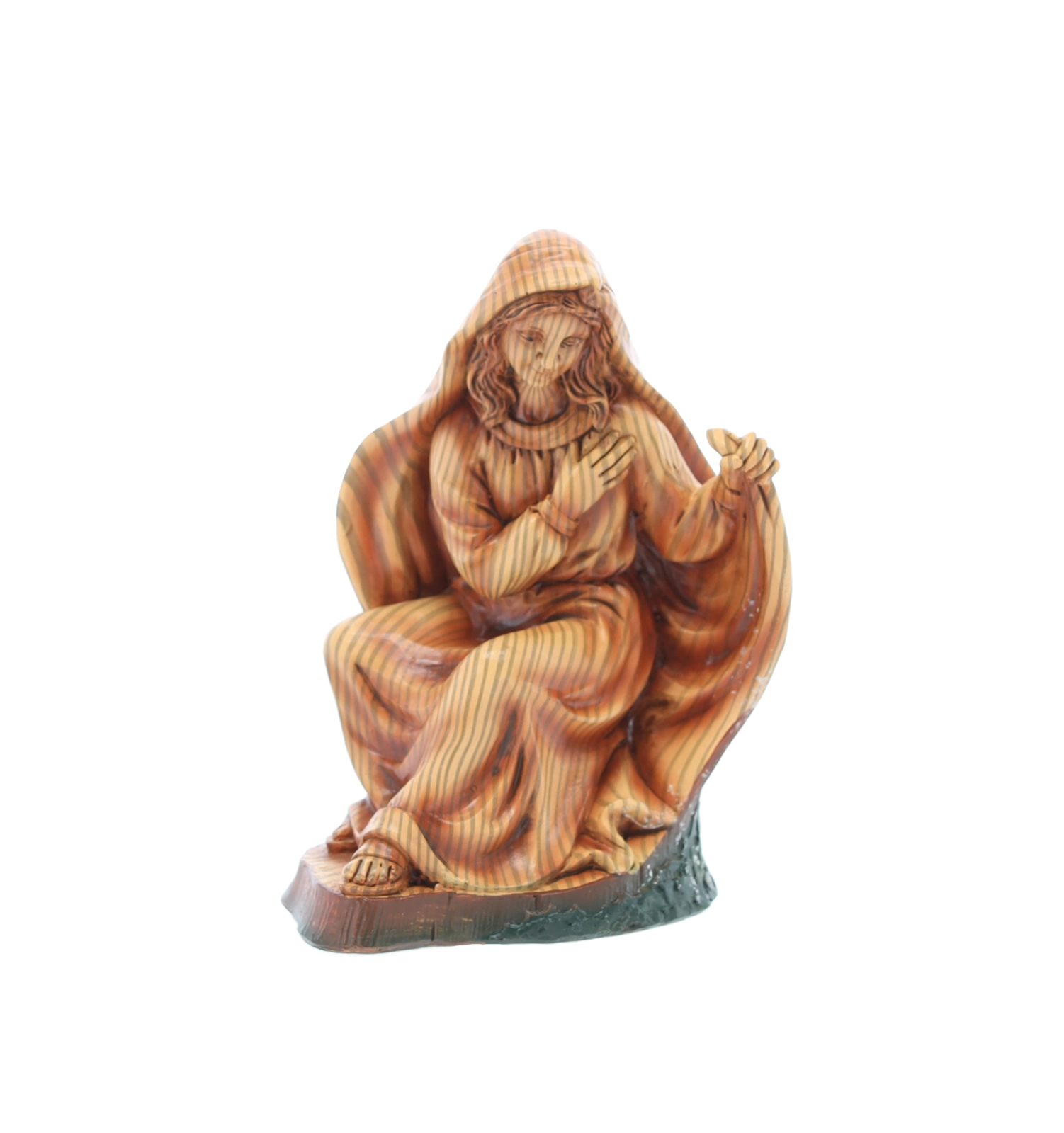 Poliresinska smola je čvrsta in odporna na vremenske vplive, zato je primerna tako za dnevno sobo kot za pokrito teraso ter cerkvene ali skupnostne prostore. Višina do 24 cm zagotavlja odlično vidnost na mizi, komodi ali pod božičnim drevesom.