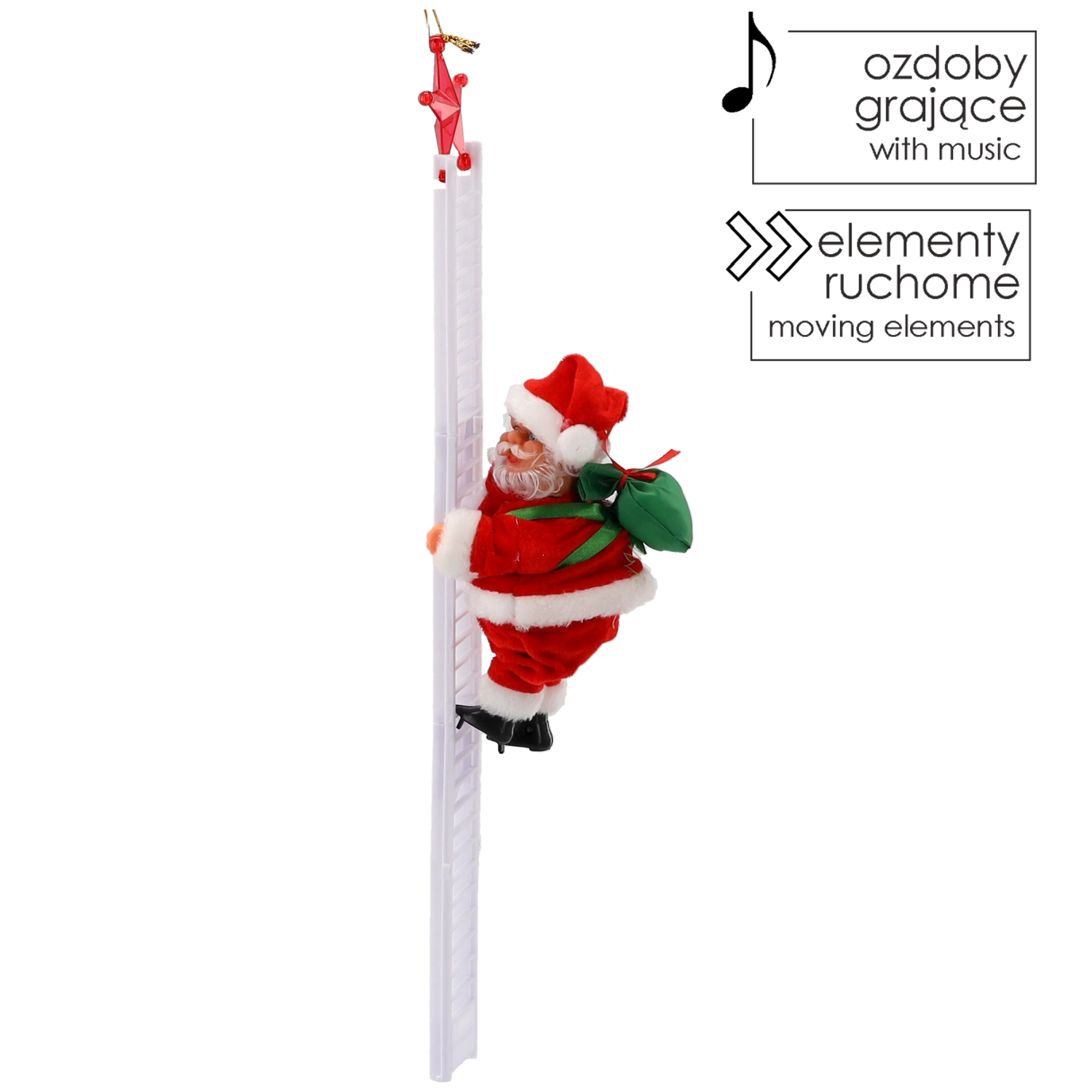 • Gibljiva dekoracija: Miklavž se gladko premika po lestvi.