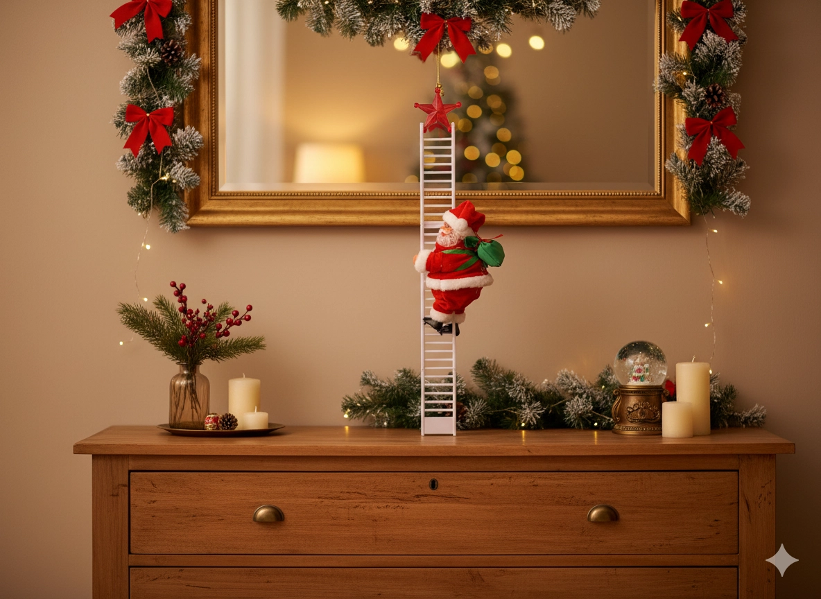 Ta očarljiva božična dekoracija z Miklavžem na lestvi takoj poživi vsak interier. Realističen gib figurice in vgrajena melodija v hipu pričarata toplo praznično vzdušje. Zahvaljujoč baterijskemu napajanju jo zlahka postavite kamor koli – v dnevno sobo, otroško sobo, pisarno ali izložbo.
