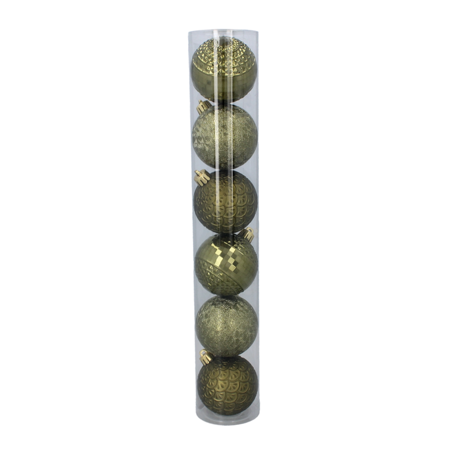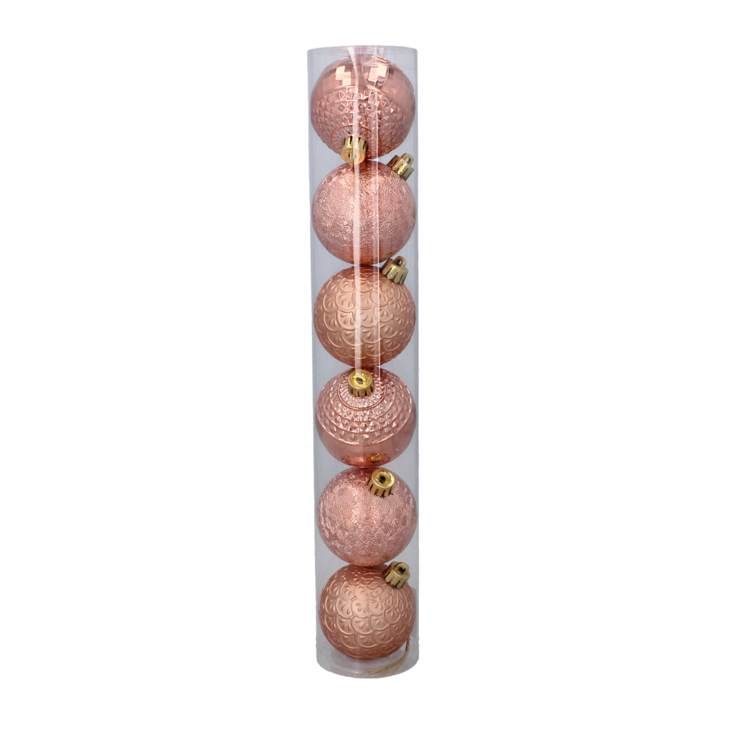 Okraski so izdelani iz vzdržljive plastike, zato bolje prenašajo rokovanje in večkratno uporabo med prazničnimi sezonami. Prozorna tuba olajša shranjevanje, ščiti krogle pred praskami in ohranja set lepo skupaj.