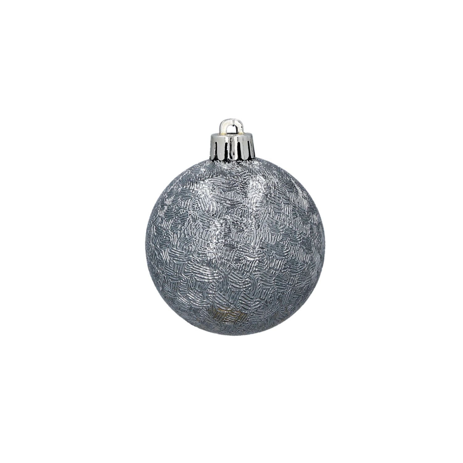 Vsaka krogla ima drugačen vzorec – sijaj, mat in relief – ki skupaj ustvarjajo živahno in elegantno kompozicijo na drevescu.