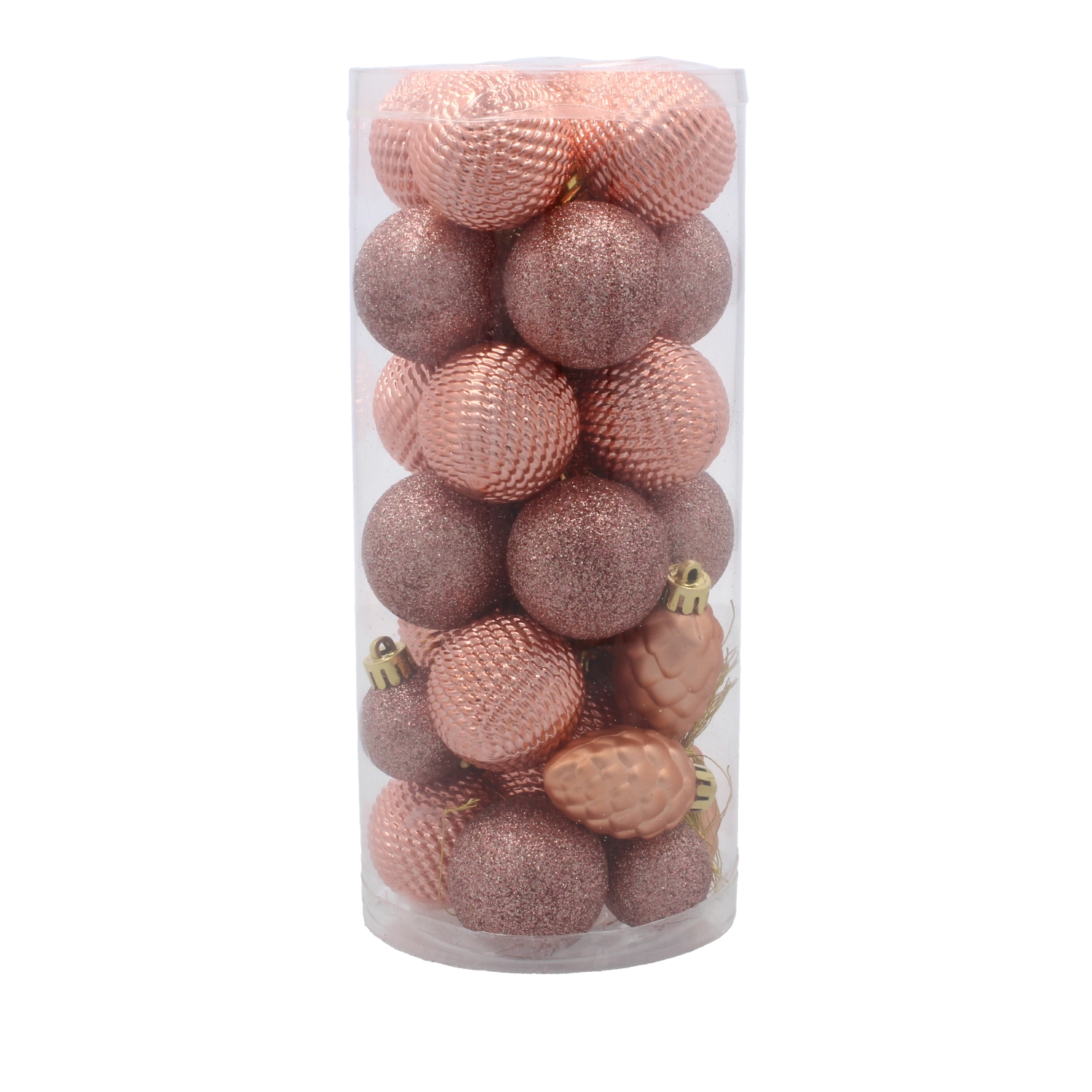 Dodajte svoji jelki brezčasen pridih s kompletom 31 lahkih plastičnih krogel v odtenkih olivne, bakrene in grafitne. Kombinacija sijočih, mat in bleščečih površin ter raznolikih vzorcev ustvari eleganten in sodoben videz, ki se zlahka ujema z različnimi interierji.