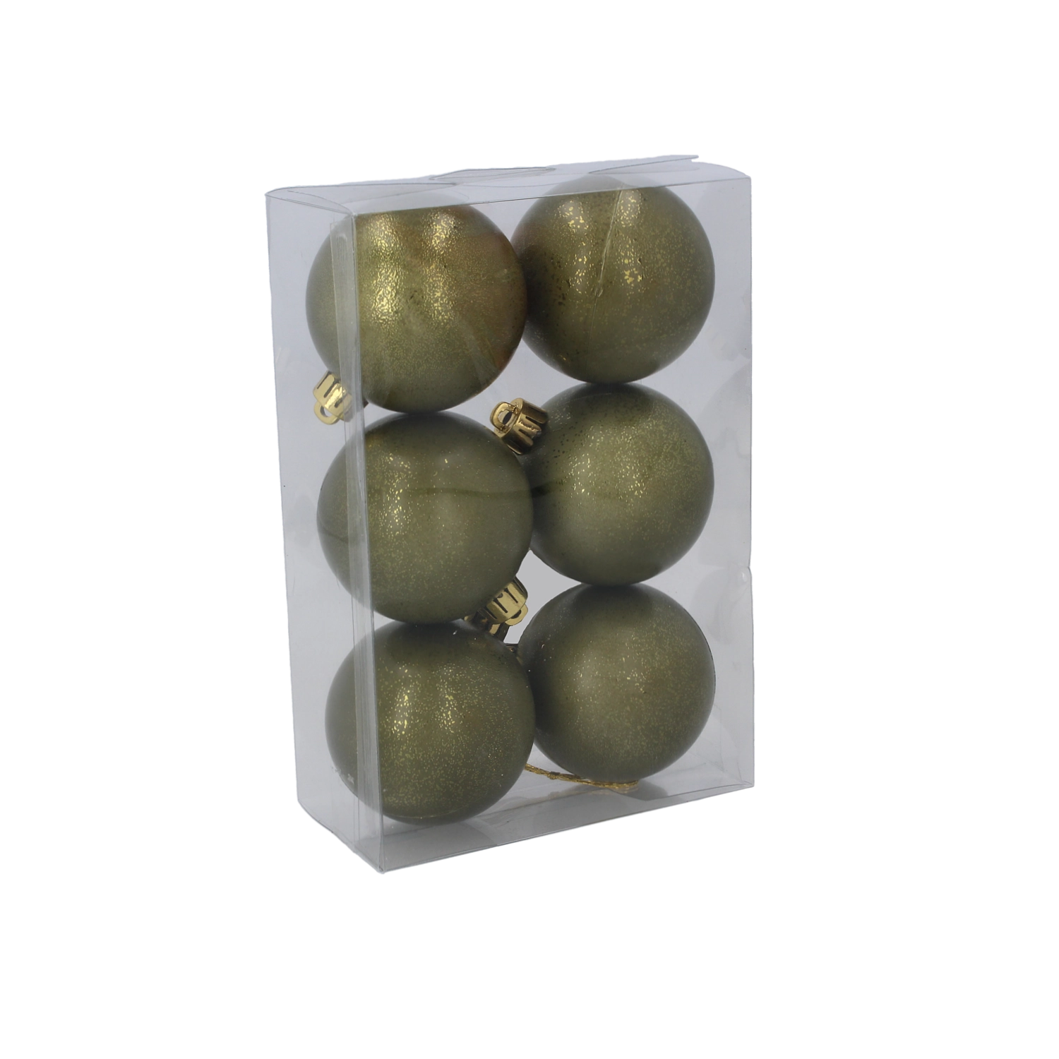 Eleganten set božičnih okraskov v harmoničnih tonih olivne, bakrene in grafitne barve v trenutku povzdigne vsako dekoracijo. Krogle s premerom 6 cm so lahke, trpežne in varne, zato so odlične za jelko, venec in praznične aranžmaje na mizi.