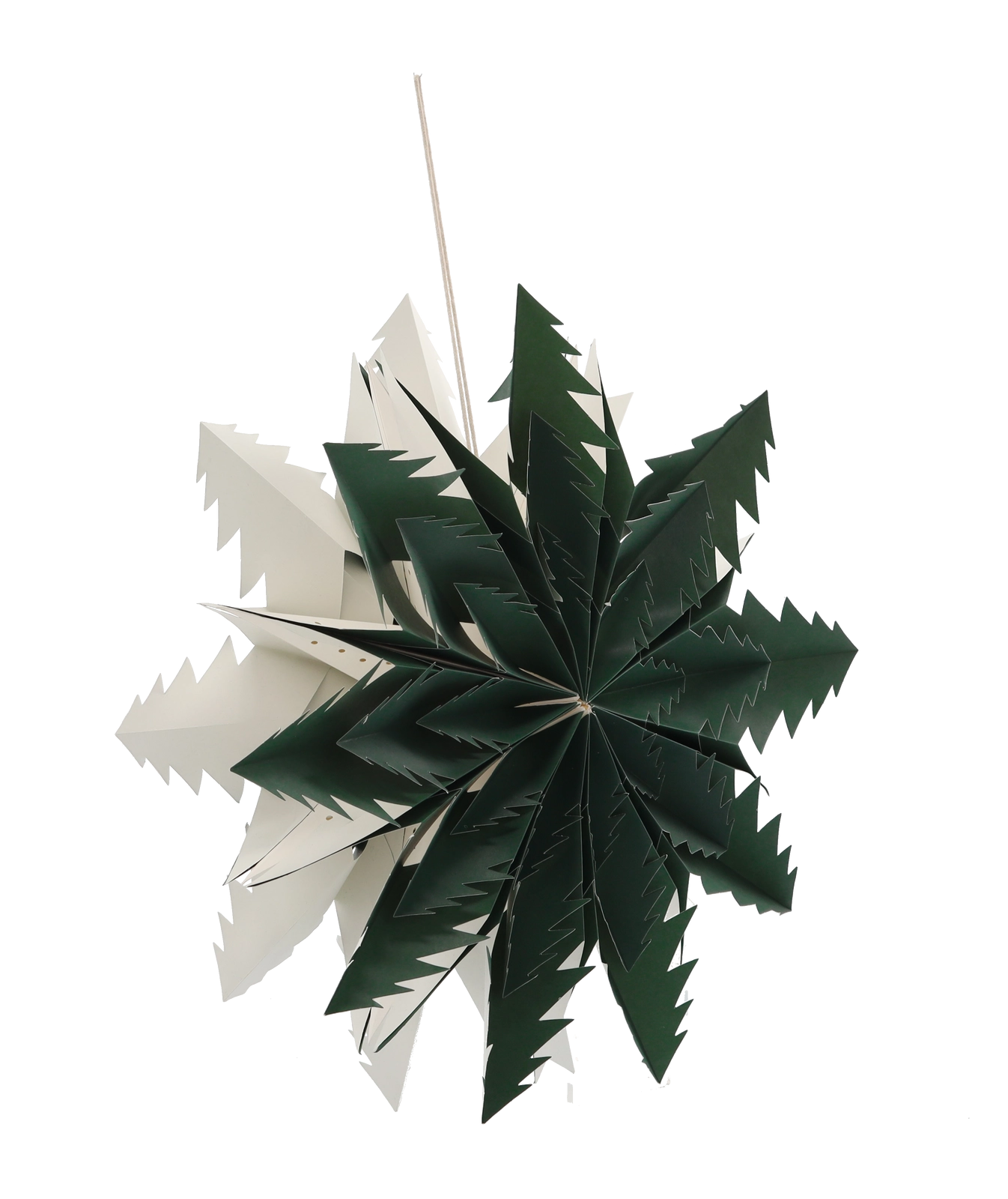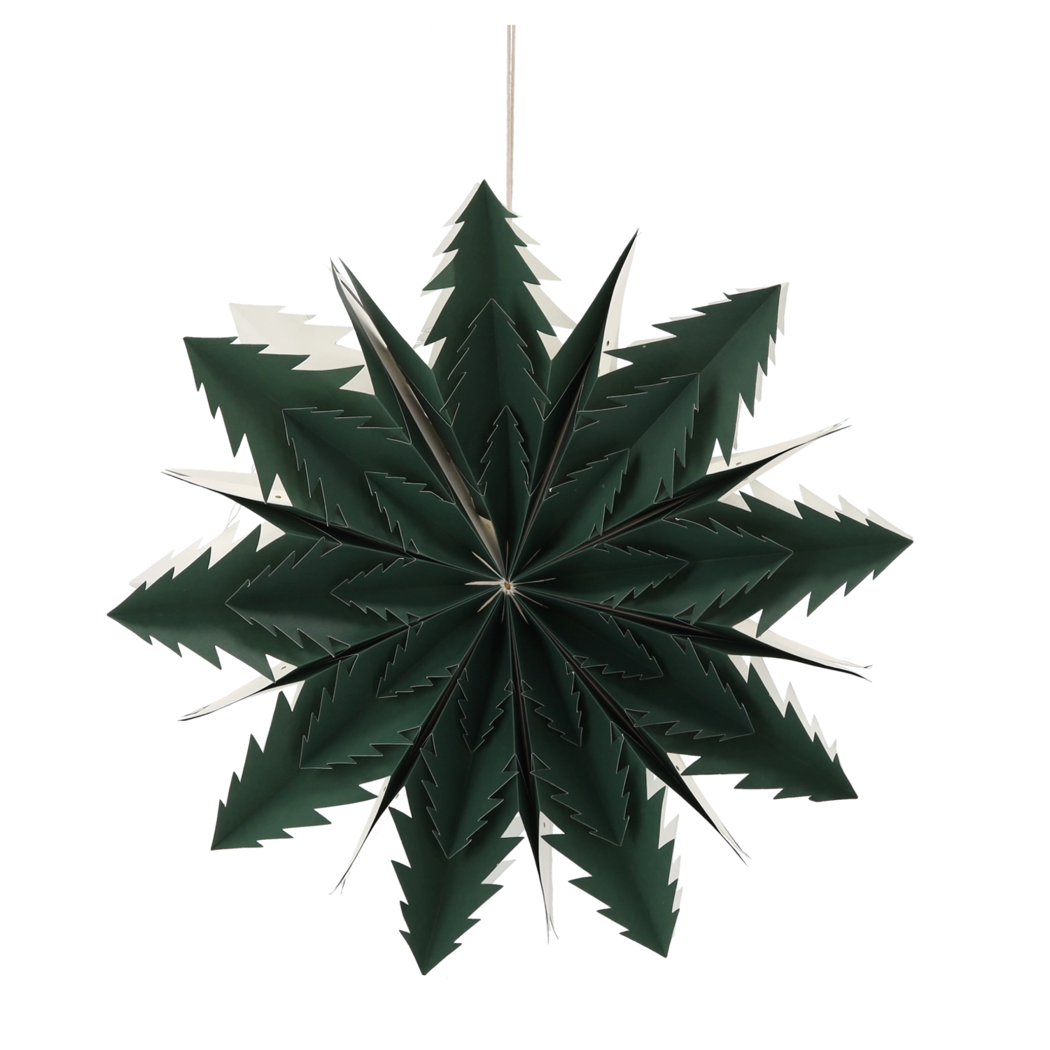 Ta stilska papirnata zvezda v temnozelenem odtenku je brezčasna zimska in praznična dekoracija. Lahka, zložljiva in večkrat uporabna – v nekaj trenutkih jo obesite na okno, strop ali v izložbo in ustvarite prijetno ambientalno osvetlitev z domačnim čarom.