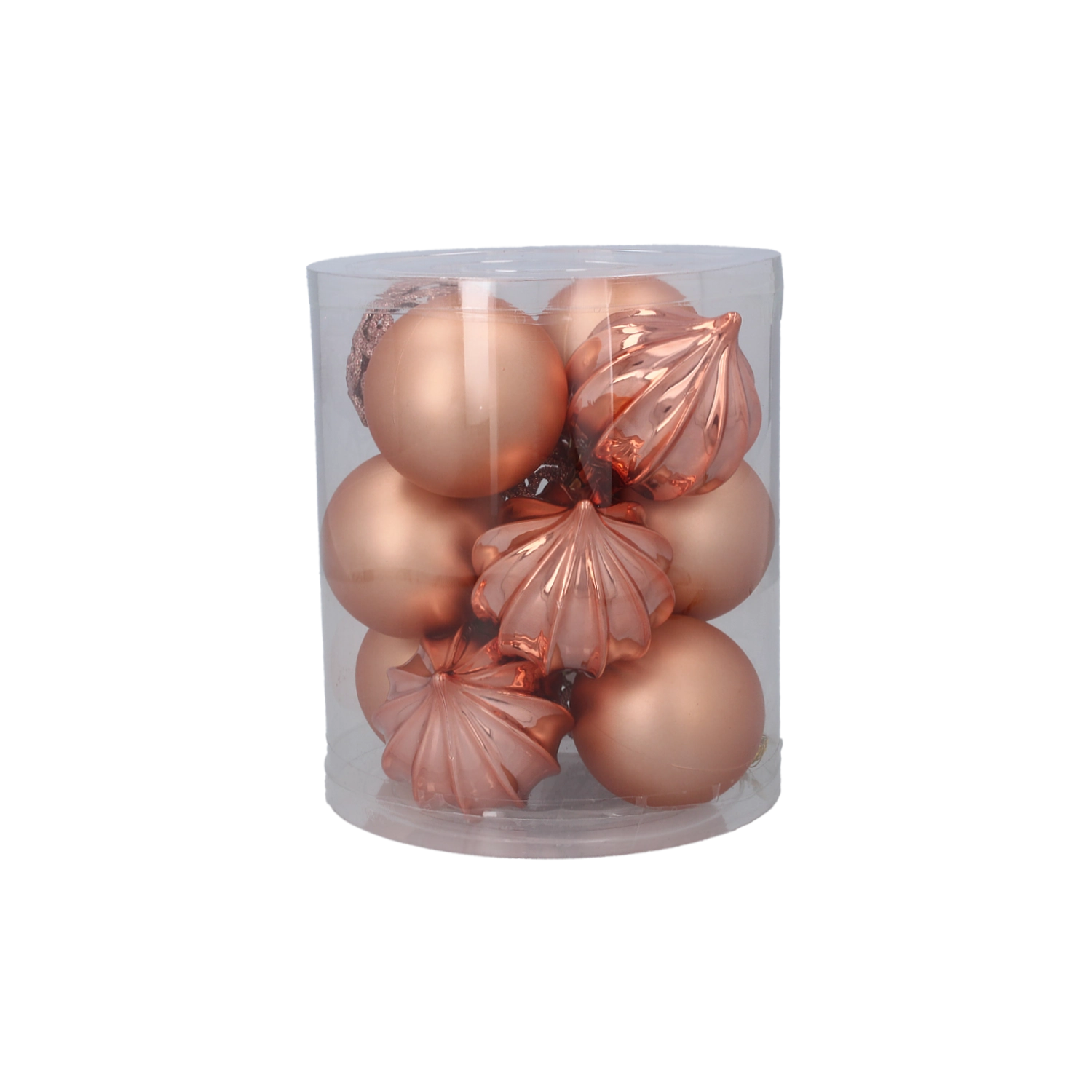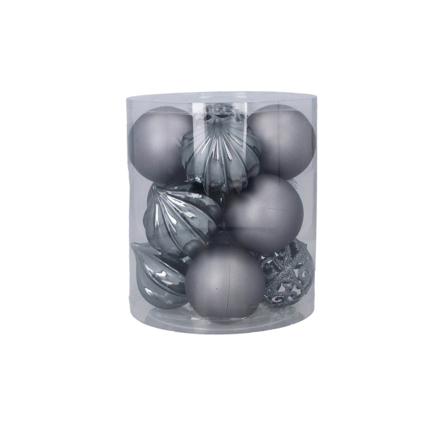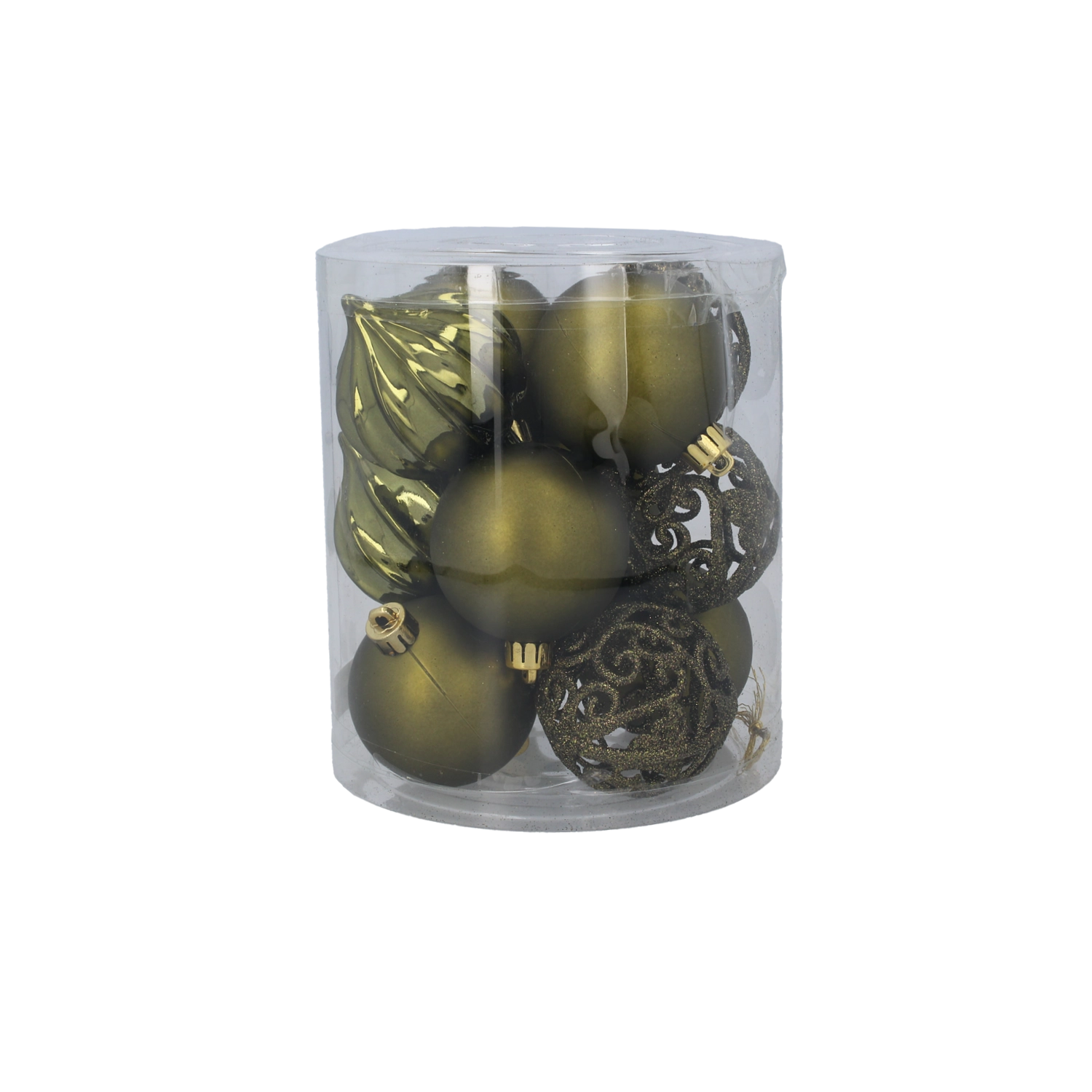 Ta univerzalen set božičnih okraskov v modnih tonih olivne, bakrene in grafitne se odlično poda k minimalističnim, naravnim in tudi luksuznim dekorjem. Lahek in nerazbiten plastičen material je idealna izbira za družine z otroki ali hišnimi ljubljenčki – krasite brez skrbi in z največjo varnostjo.