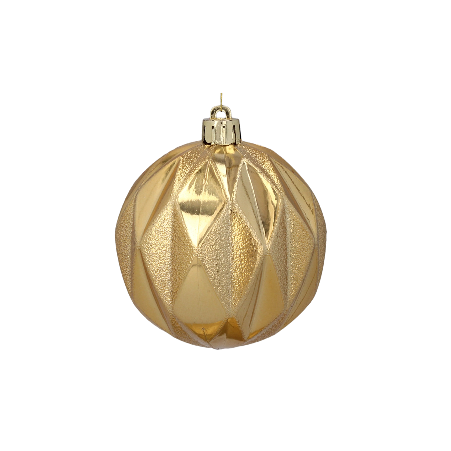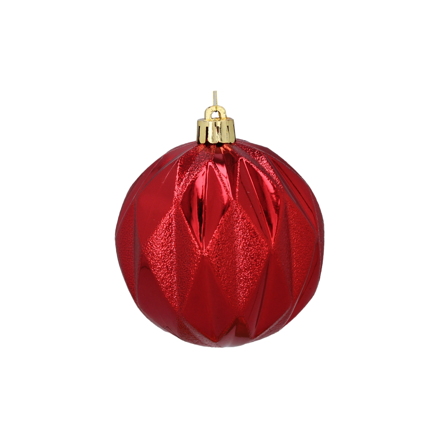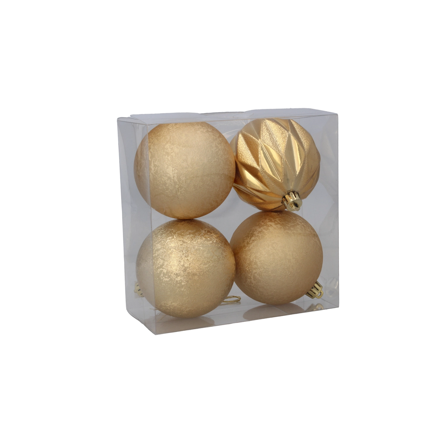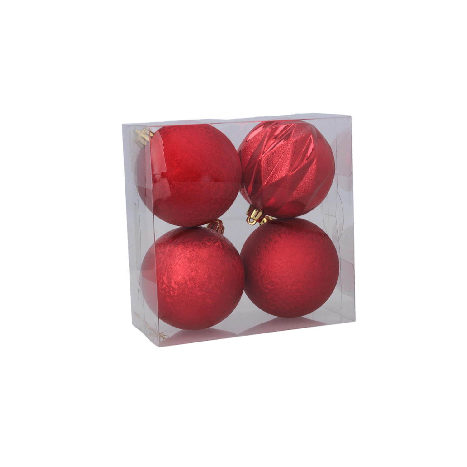 Ta eleganten set štirih plastičnih božičnih krogel prinaša harmonično kombinacijo rdeče, zlate in srebrne. Vsaka krogla ima drugo površino – od mat in nežno teksturirane do sijajne in fasetirane – kar na vašem drevescu ustvari dinamičen, a okusno usklajen videz.