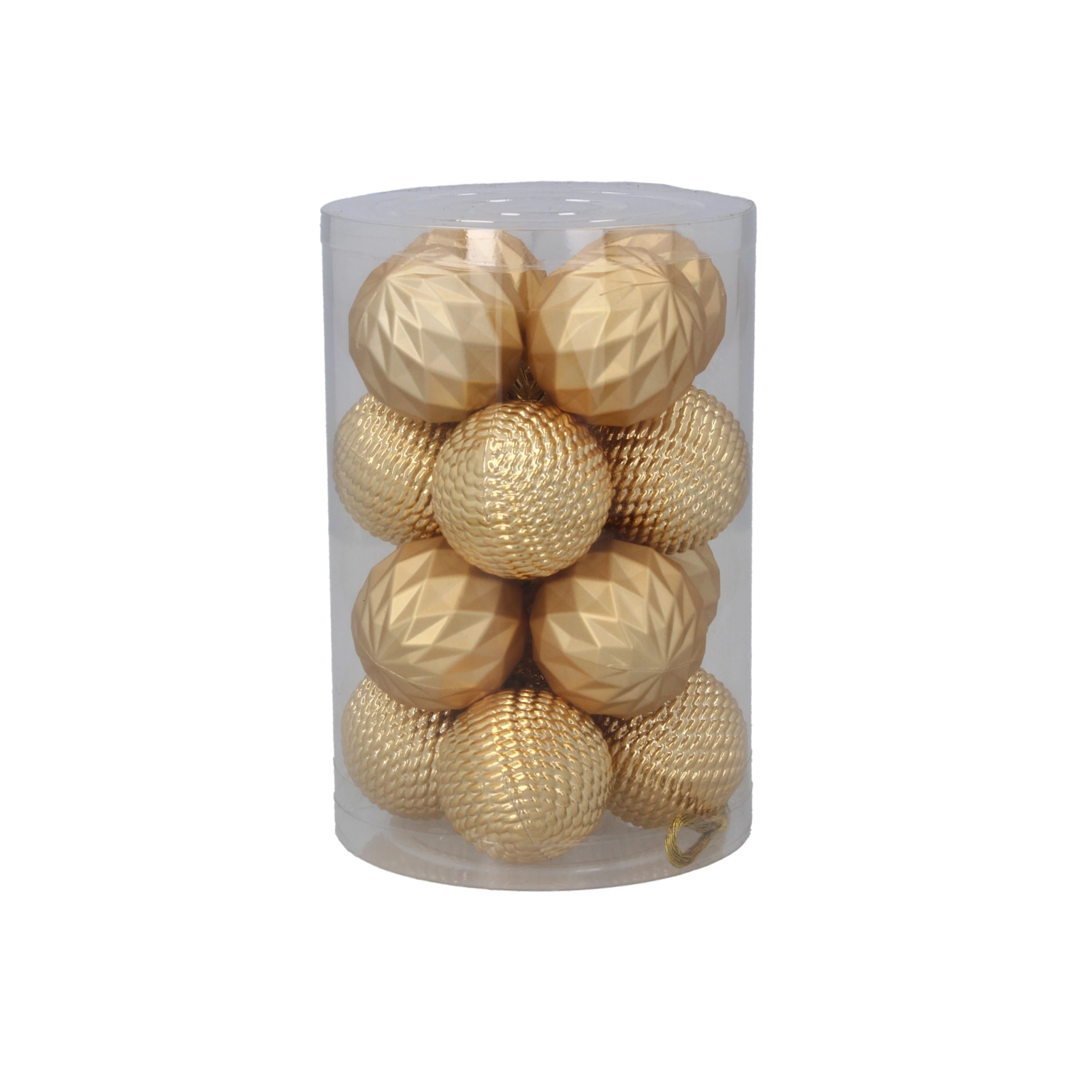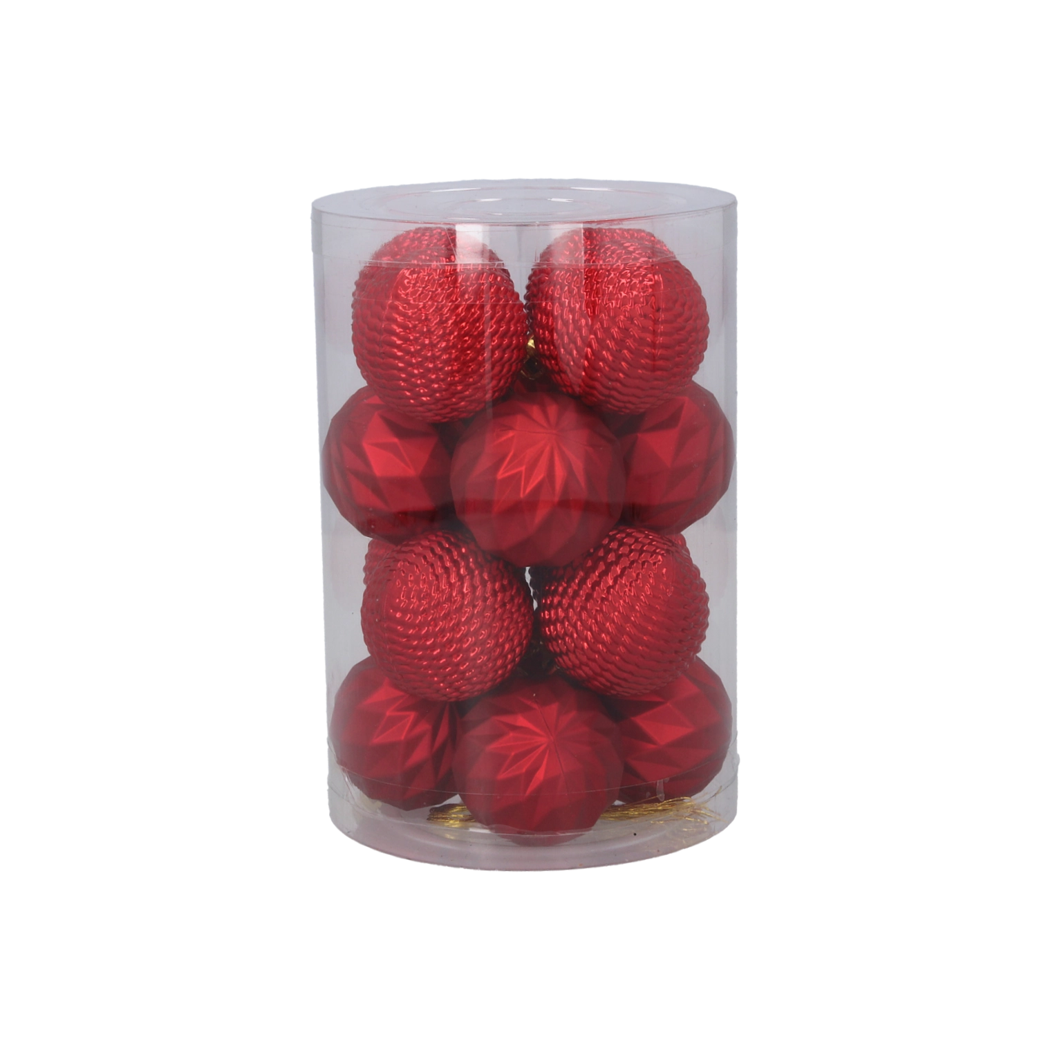 Eleganten set 16 božičnih okraskov s premerom 4 cm v kombinaciji rdeče, zlate in srebrne barve bo vašemu drevesu dodal tradicionalen in slovesen videz. Okraski iz netrdečega materiala so varni, lahki in trpežni. Praktično pakiranje v prozornem tulcu olajša shranjevanje in prenašanje.