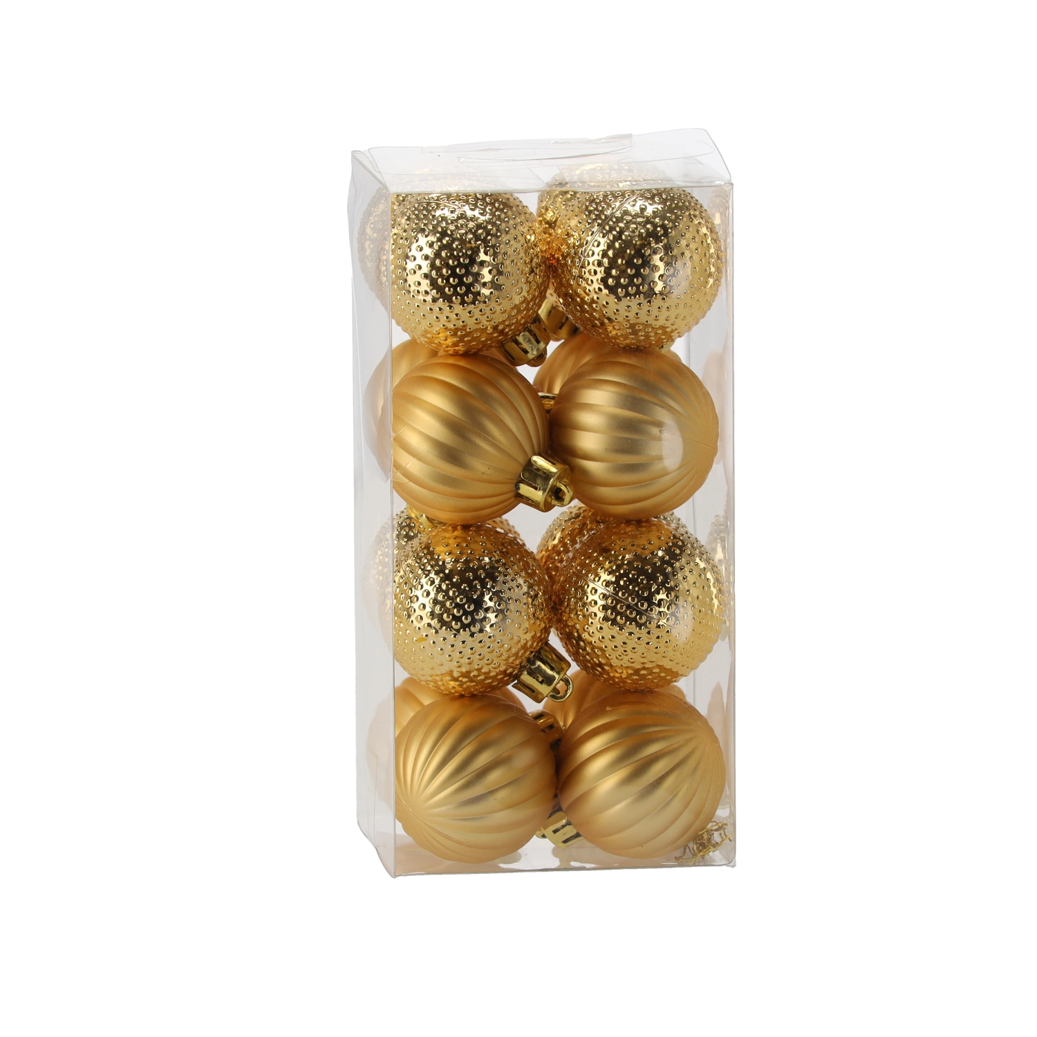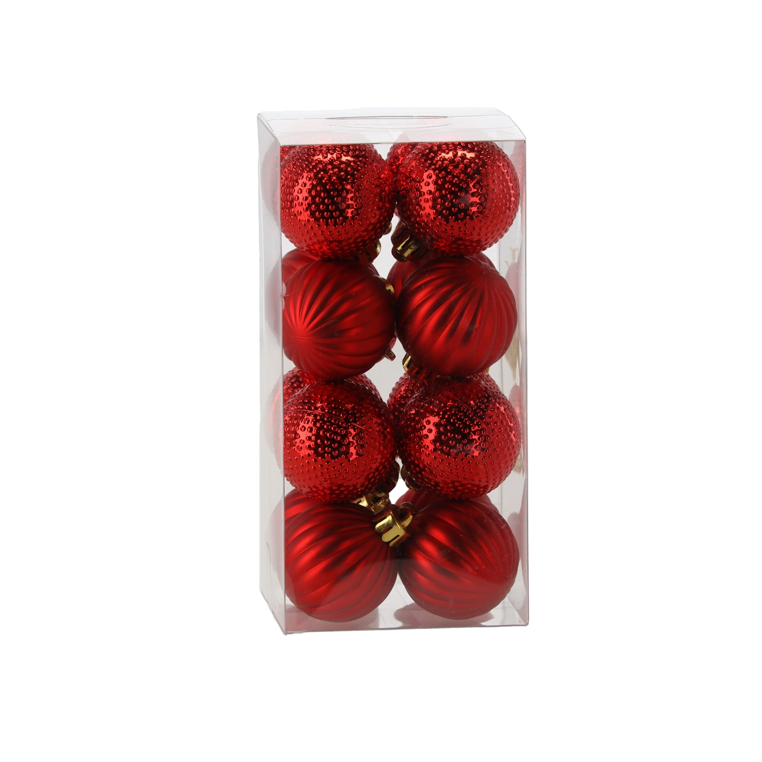 Ustvarite harmonično usklajeno božično dekoracijo s setom 16 krogel s premerom 4 cm v tradicionalnih barvah rdeče, zlate in srebrne. Kombinacija mat, sijočih in bleščičnih površin z rebrastimi in pikčastimi teksturami prinaša učinek igre svetlobe ter sofisticiran, eleganten videz.