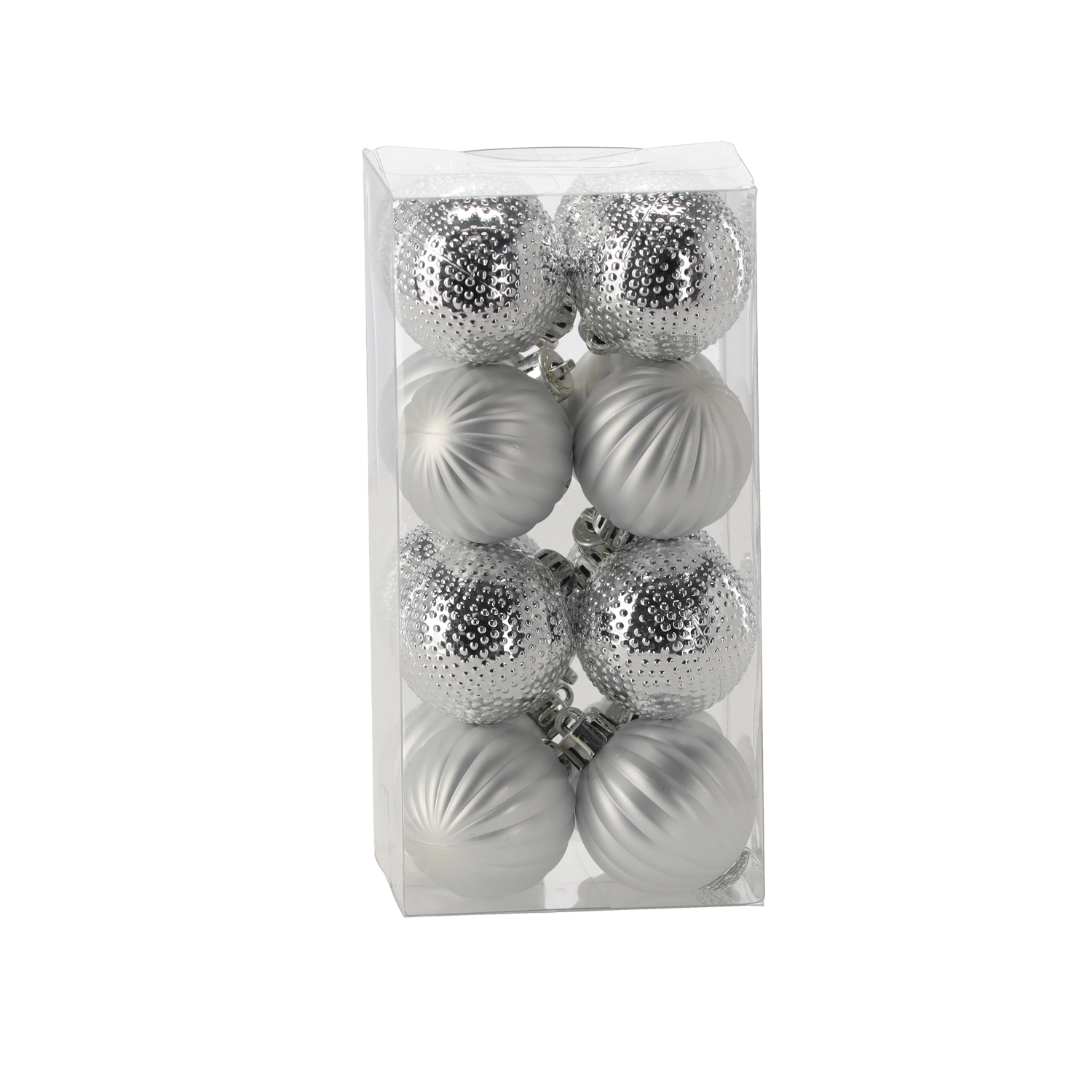 Mat rebraste krogle ustvarjajo diskreten kontrast s sijočimi in bleščičnimi različicami ter zagotavljajo vizualno globino na drevesu.