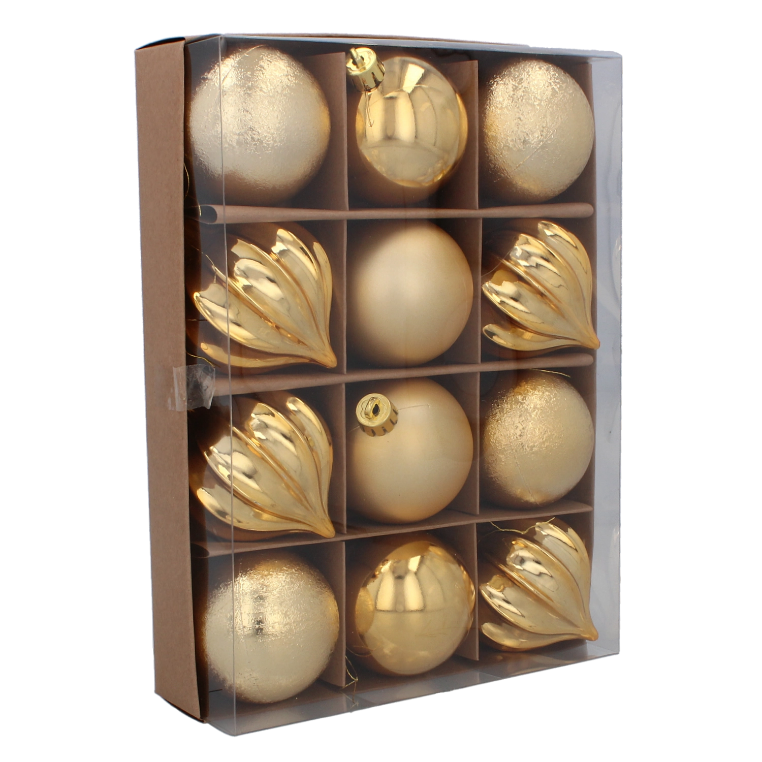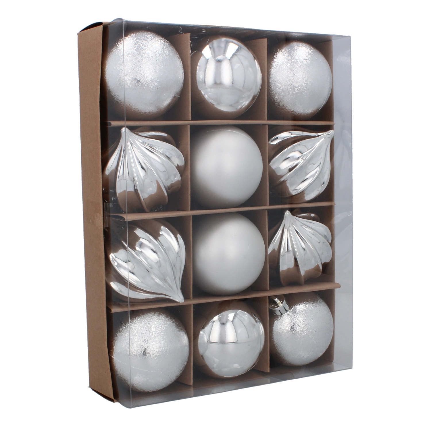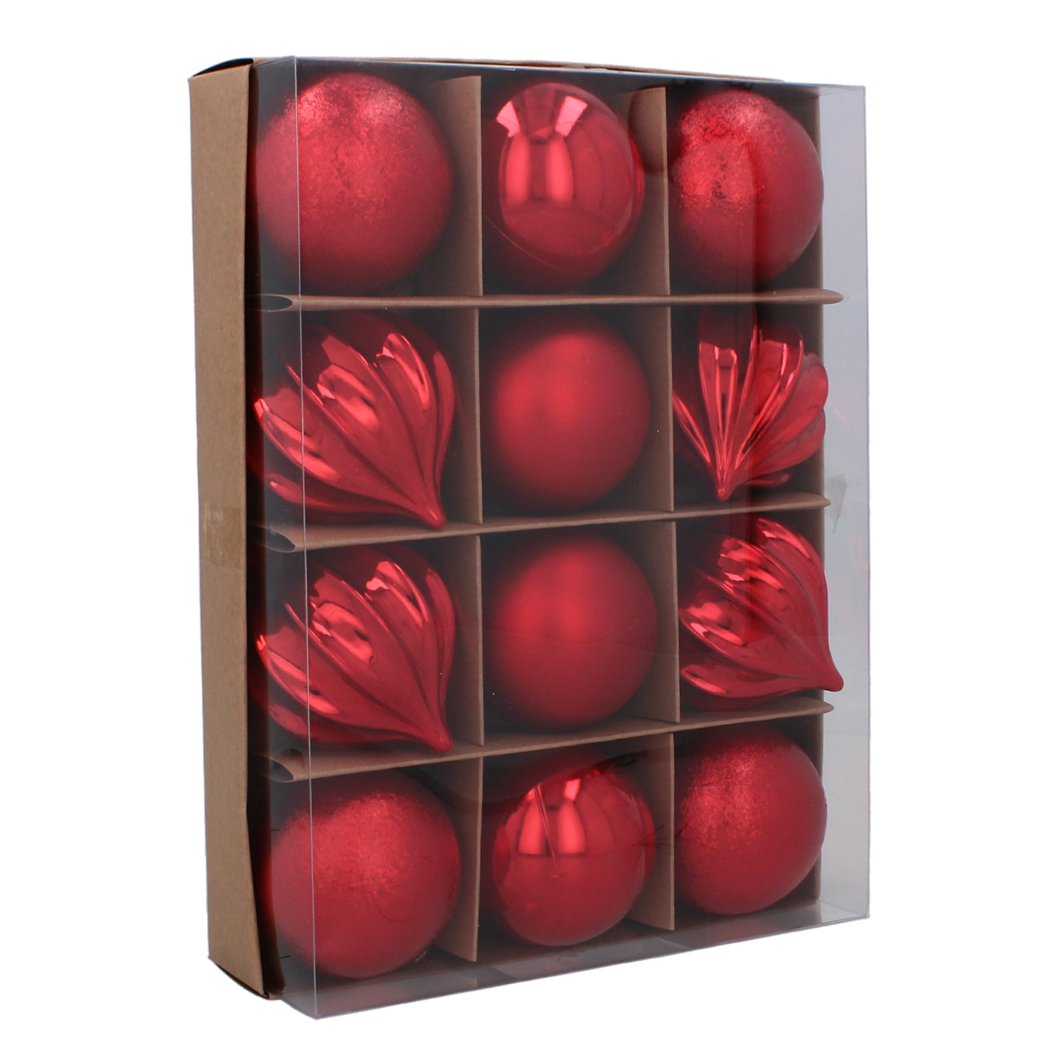 Eleganten komplet 12 božičnih okraskov s premerom 6 cm v kombinaciji rdeče, zlate in srebrne barve doda drevesu tradicionalen pridih. Okraski so iz lahke, nelomljive plastike, zato so varni za otroke in hišne ljubljenčke. Mešanica mat, sijajnih in teksturiranih površin ustvari živahen in skladen učinek, prosojna embalaža pa olajša shranjevanje po praznikih.