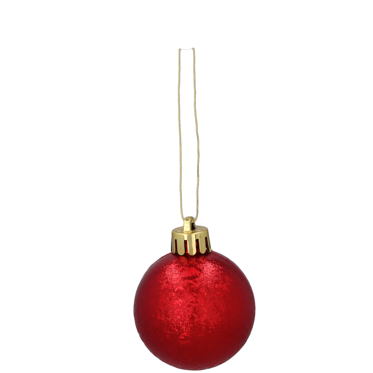Eleganten komplet 47 božičnih okraskov s premerom 4–6 cm v rdeči, zlati in srebrni barvi bo vašemu drevesu dodal tradicionalen in stilski videz. Okraski iz netrljive plastike so lahki, vzdržljivi in varni za gospodinjstva z otroki in hišnimi ljubljenčki. Kombinacija bleščečih in mat površin ter različnih oblik ustvarja bogato, harmonično dekoracijo brez obremenjevanja vej.