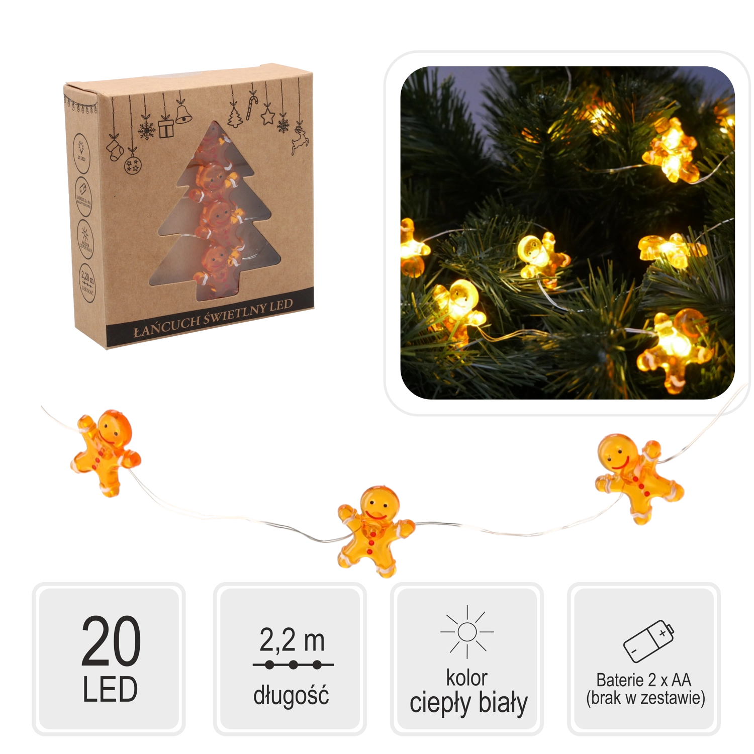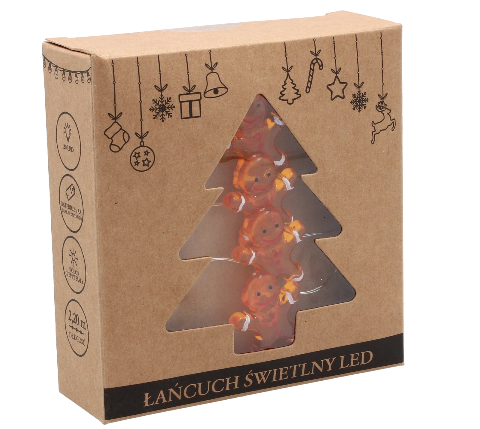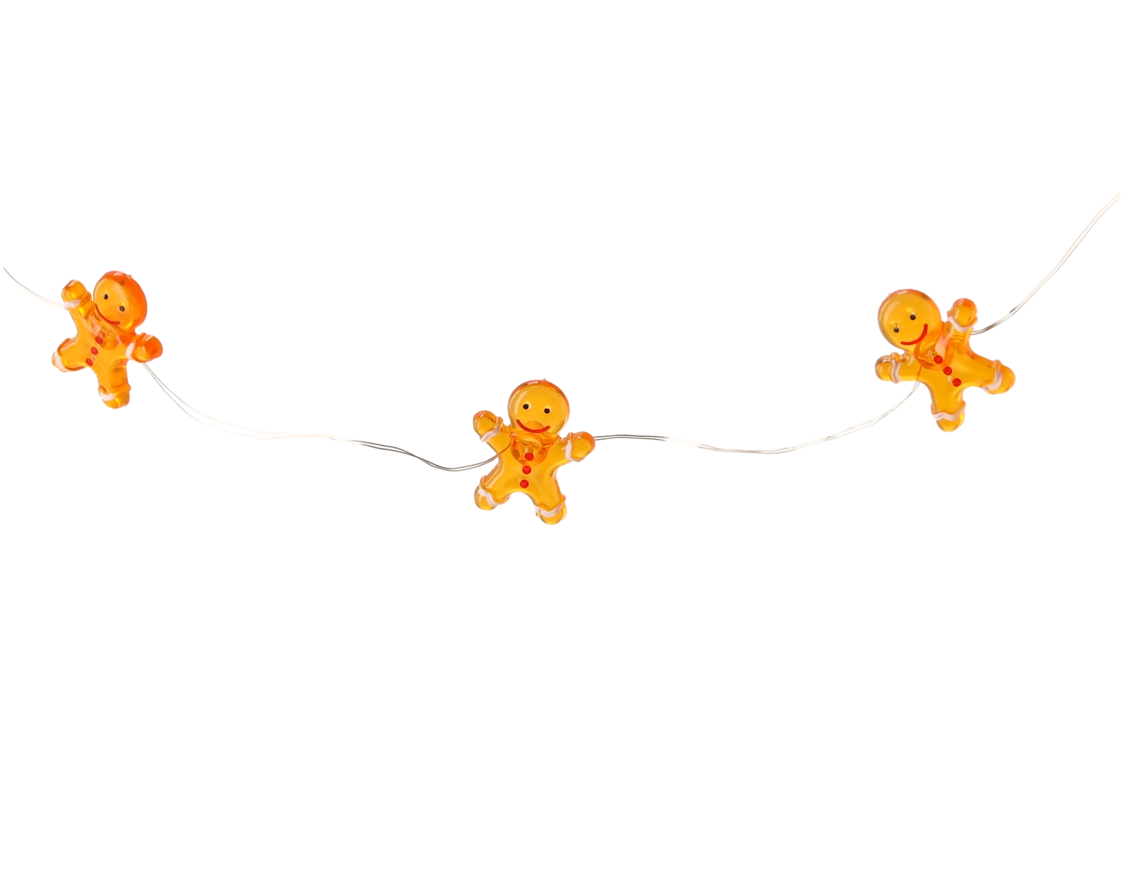 Razsvetlite svoj dom s čarobnim svetlobnim nizom z motivom medenjakovih možičkov. 20 toplih LED ustvari udobno praznično vzdušje, medtem ko napajanje na baterije zagotavlja popolno svobodo postavitve brez kablov. Idealno za božično okrasitev drevesca, polic, ograj in prazničnih aranžmajev.