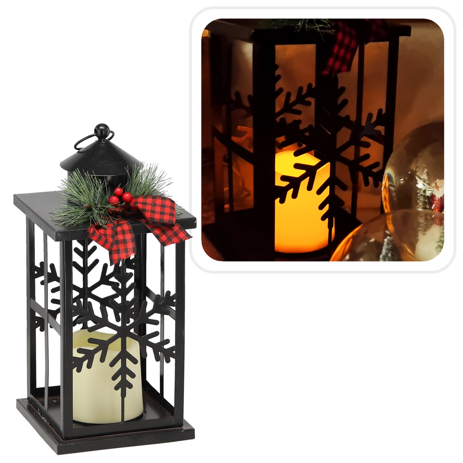 Eleganten božični lampijon v črni kovinski izvedbi bo vašemu domu pričaral prijetno svetlobo in praznično vzdušje. Dekor krasijo nežni motivi snežnih kristalov, modna trakica in toplo LED osvetlitev, ki je varna in varčna. Idealno kot dekoracija za mizo, komodo ali okensko polico.