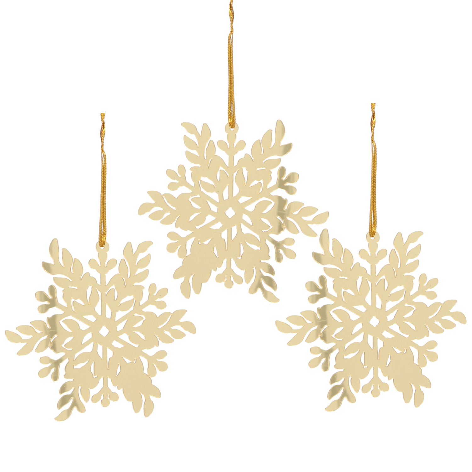 Zlati božični okraski snežinke 8 × 8 cm – komplet 3 kos