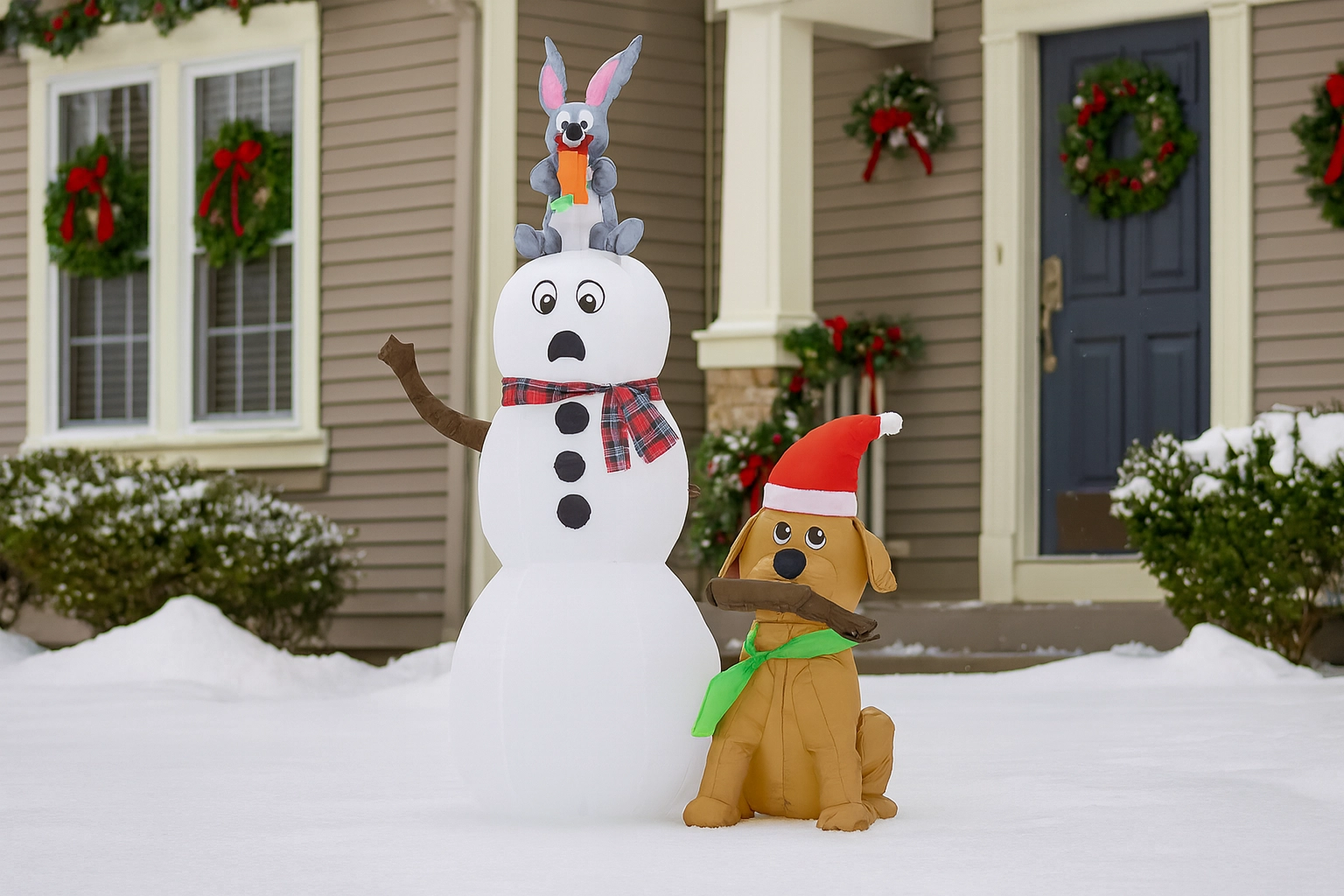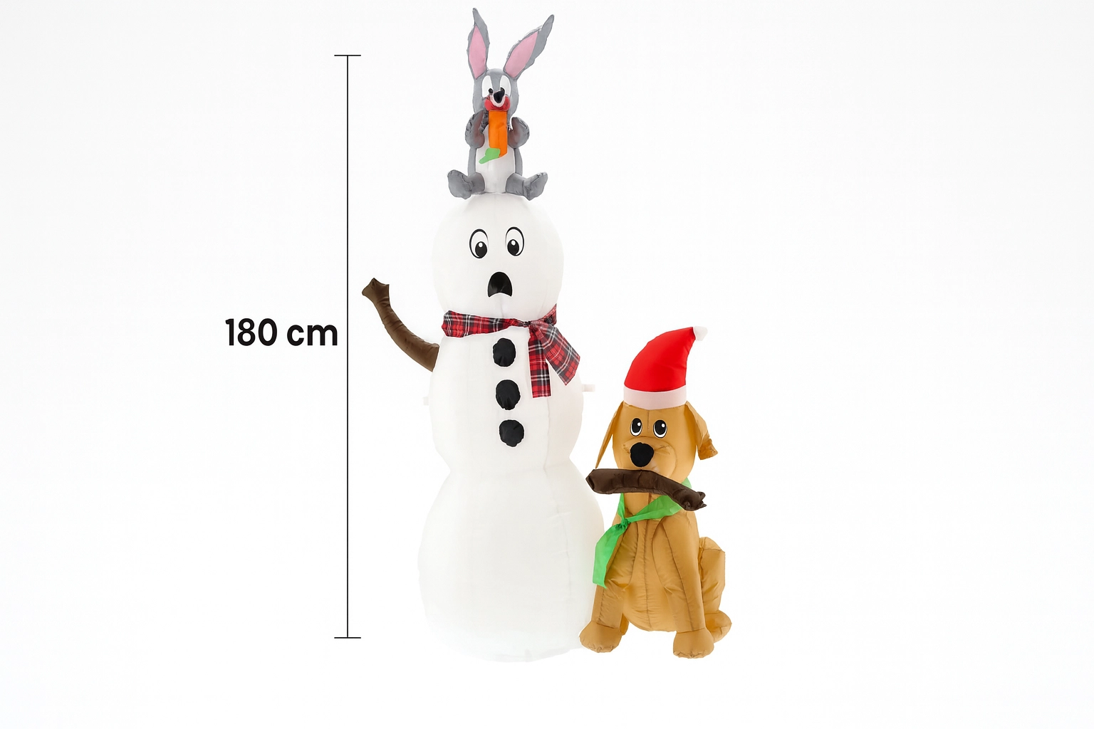 V svoj dom in vrt vnesti božični čar s tem ljubkim napenljivim snežakom s psom in zajčkom. Zahvaljujoč vgrajeni LED osvetlitvi, višini 180 cm in preprosti namestitvi bo v hipu ustvaril pravljično vzdušje, vidno od daleč – idealno za notranjo in zunanjo uporabo.