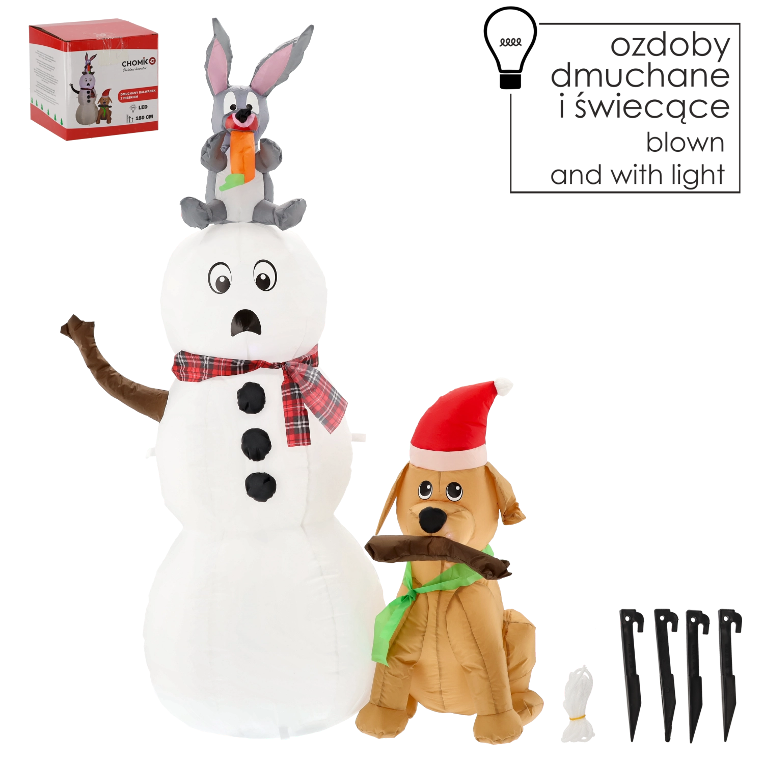 Napenljiv snežak s psom in zajčkom z LED osvetlitvijo 180 cm