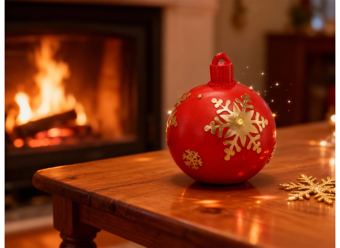 Sijajna površina z motivom snežink deluje slovesno in se preprosto kombinira z drugimi božičnimi okraski.