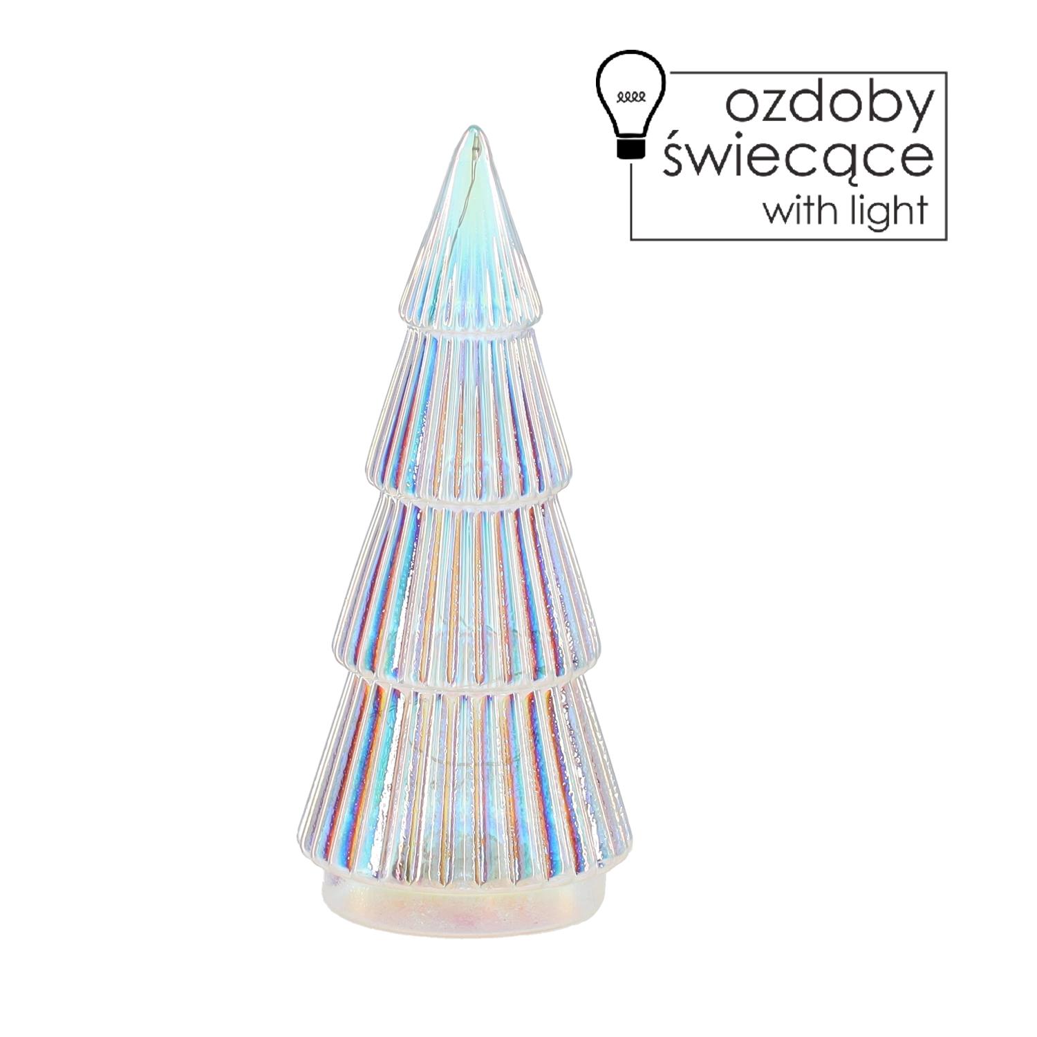 Elegantna steklena božična okrasitev v obliki srebrnega drevesca z LED osvetlitvijo bo zasijala v vsakem prazničnem interierju. Zahvaljujoč sijoči površini in nežki, varčni svetlobi ustvarja prijetno vzdušje in se zlahka vklopi v tradicionalno ali moderno dekoracijo. Kompaktne mere omogočajo postavitev na mizo, polico ali kot del večje dekoracije.