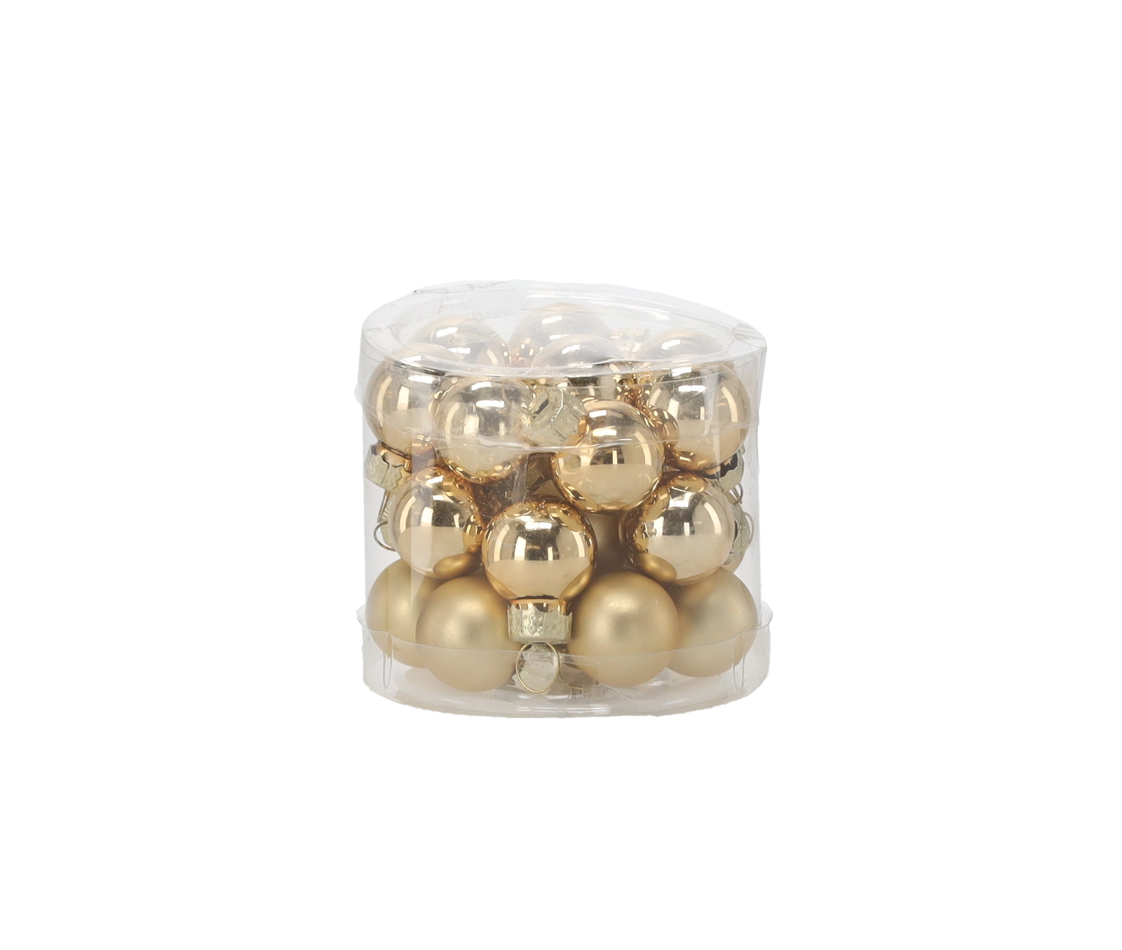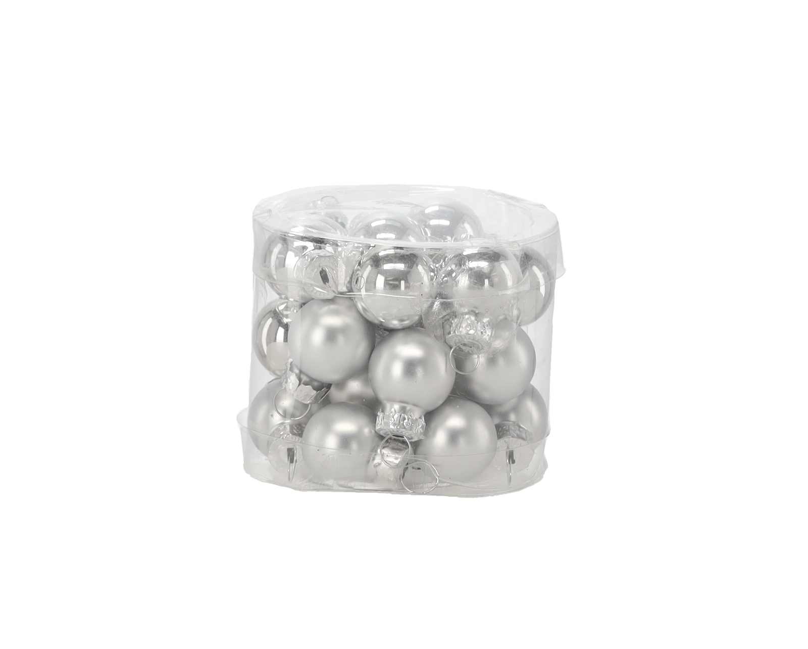 Dodelajte svojo božično dekoracijo do zadnje podrobnosti. Ta kompaktni set steklenih bunk s premerom 2 cm združuje sijoče in mat površine v harmoničnem miksu barv, ki lepo odbijajo svetlobo prazničnih luči in prostoru dodajo prijetno atmosfero.