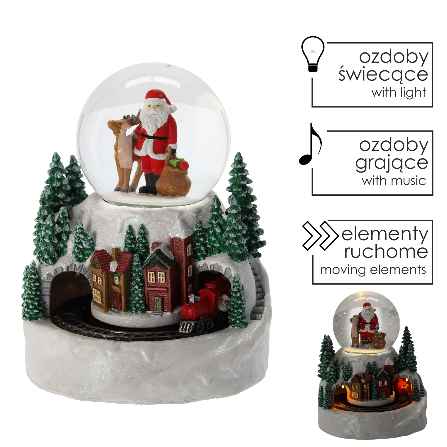 Ta podrobno izdelana snežna krogla z motivom SANTE in zimske vasice bo očarala odrasle in otroke. Vgrajena LED osvetlitev ustvarja topel sij, medtem ko mini vlakec kroži okoli podstavka in prizoru dodaja živost. Dekoracija ponuja 3 načine delovanja, zato lahko uživate v svetlobi in gibanju z glasbo ali v tihem načinu.