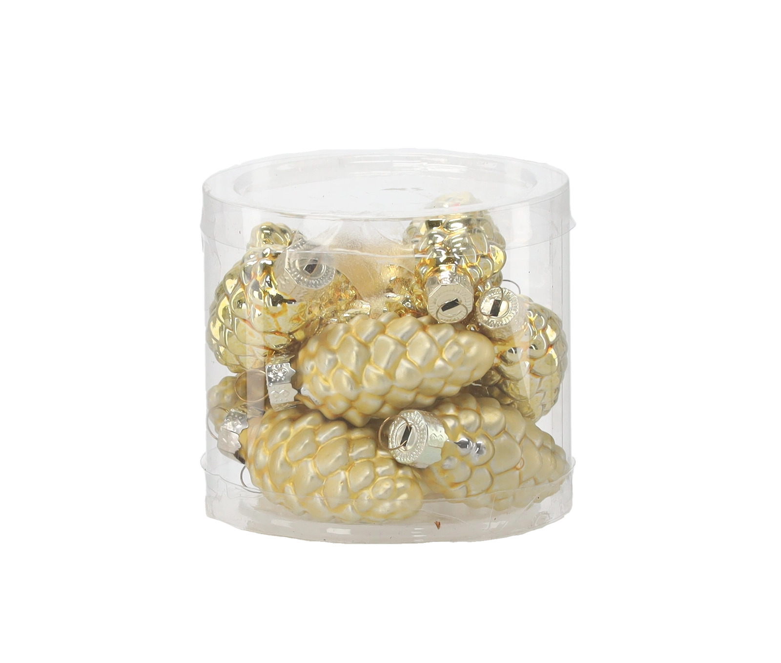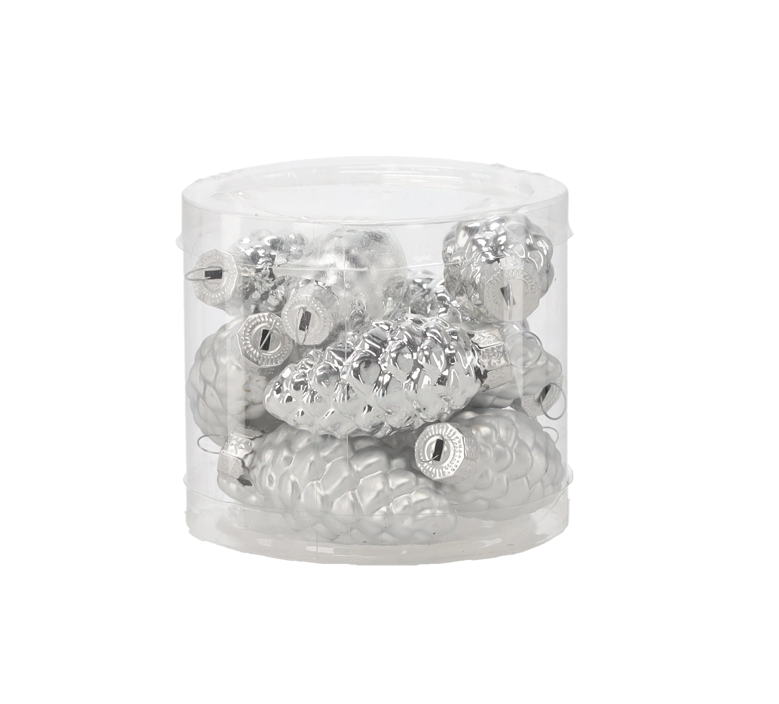 Ta brezčasni set steklenih storžev zlahka uskladite s tradicionalnim ali modernim okrasjem. Natančno strukturirana površina verno posnema naravni storž in izstopa tako na zelenih iglicah kot v dekorativnih aranžmajih na venčkih ali girlandah.