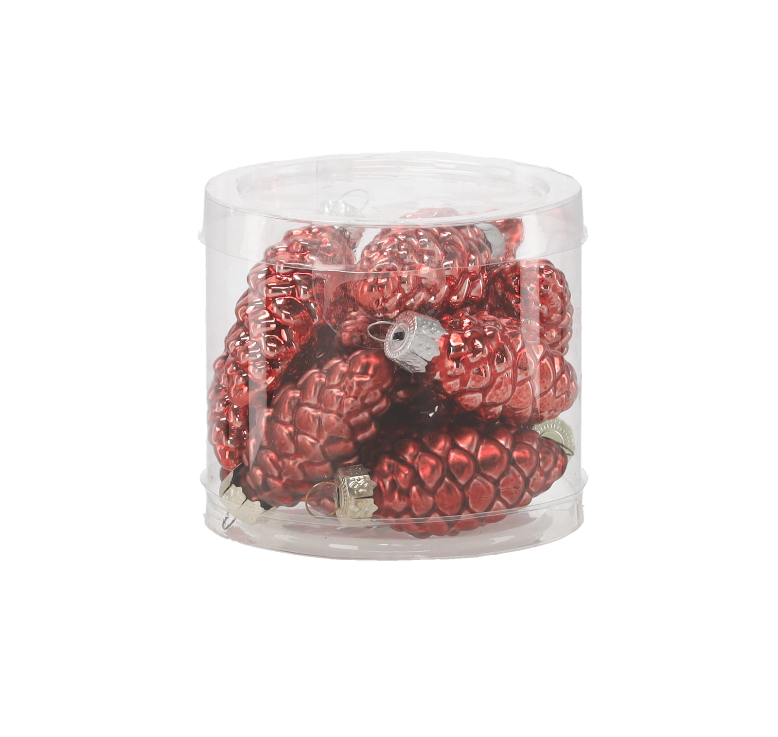 Ustvarite doma čarobno praznično vzdušje z zbirko 12 steklenih okraskov v obliki storžev. Vsak storž z merami približno 2,7 × 5,9 cm je skrbno oblikovan za avtentičen naravni videz. Kombinacija sijajnih in mat površin v različnih barvah doda drevesu eleganten lesk in globino svetlobnih odbojev.