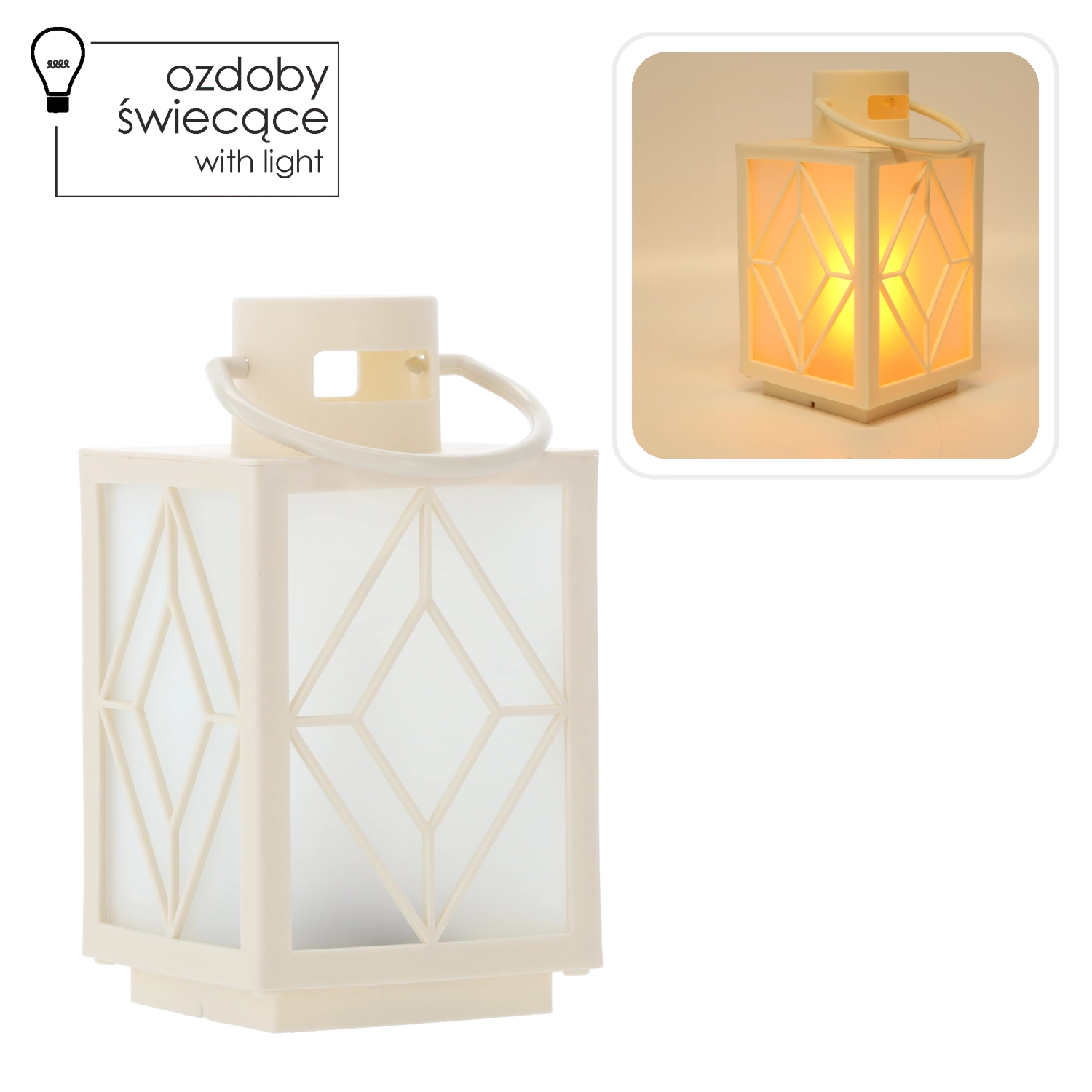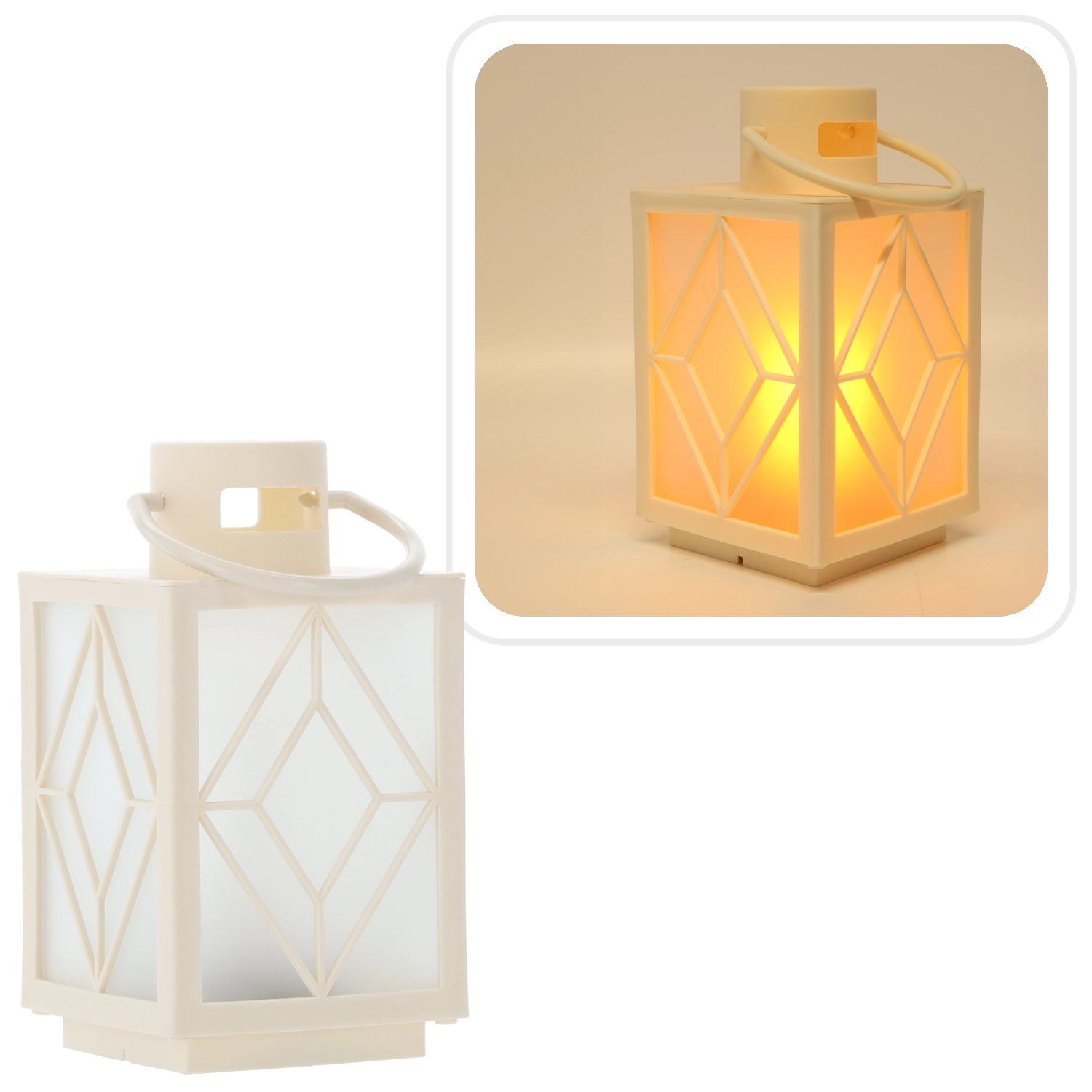 Okraskajte svoj dom z nežno toplo svetlobo. Bel dekorativni lampijon z mat polnili in geometrijskim motivom ponuja prijetno razpršeno osvetlitev, ki spominja na svečo, vendar brez dima in voska. Idealen za adventno dekoracijo, večerni počitek ali slavnostno pogrinjanje.
