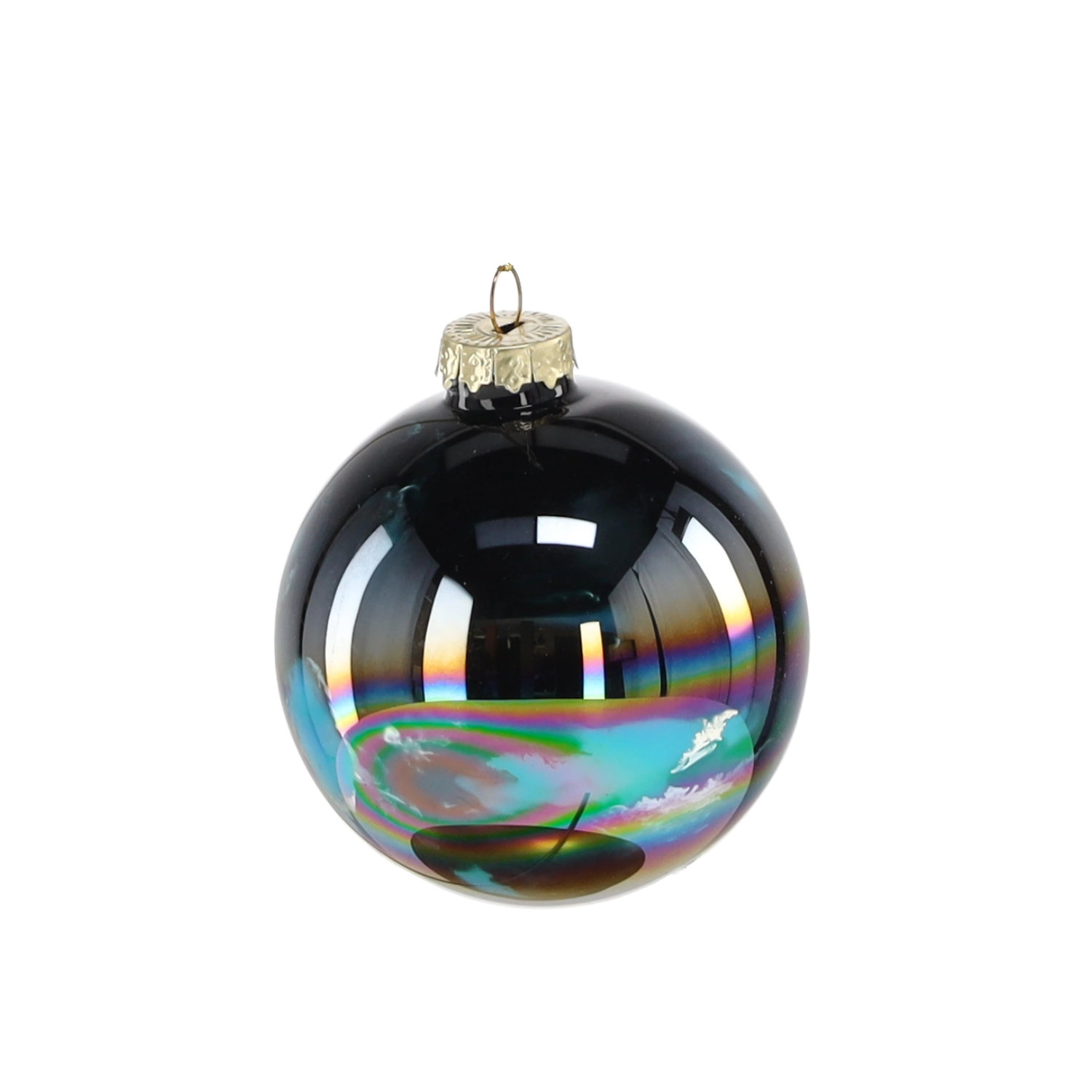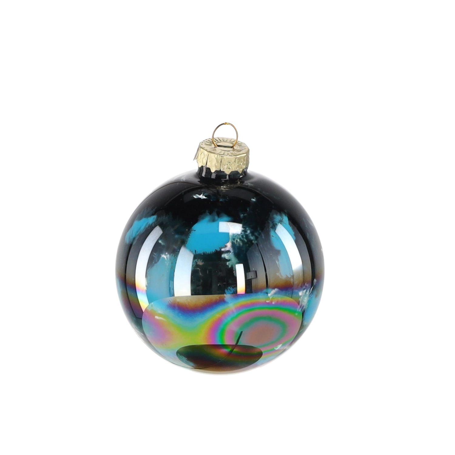 Ti stekleni božični okraski izstopajo po kakovostni izdelavi in vzdržljivosti. Zahvaljujoč edinstvenemu bencinskemu učinku se na površini pojavijo nežni mavrični prehodi, ki poudarijo čarobno vzdušje božiča in se zlahka kombinirajo z drugimi dekoracijami v modernem ali klasičnem slogu.