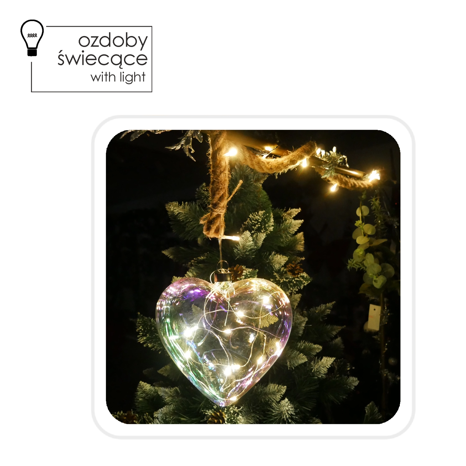 Ta elegantna steklena dekoracija v obliki srca takoj ustvari prijetno vzdušje v vsakem interierju. Prozorno steklo z holografskim učinkom lepo odbija svetlobo, v kombinaciji z 10 LED diodami v toplo beli barvi pa prostor napolni z nežnim, domačnim sijem.