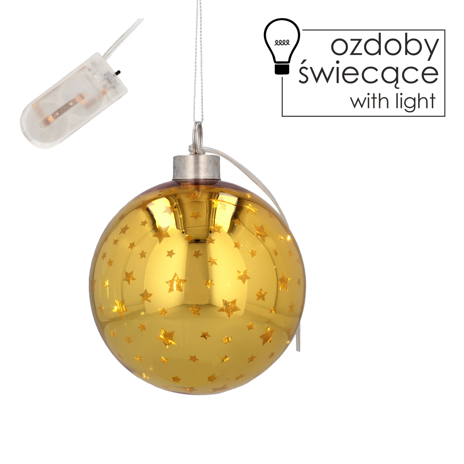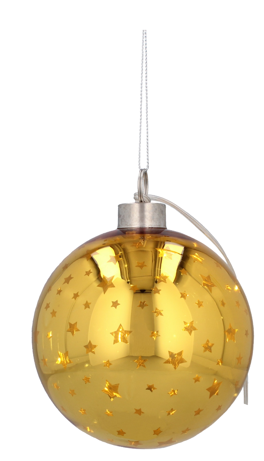 Ta steklena krogla z nežnim vzorcem zvezdic bo vaši praznični okrasitvi dodala pridih elegance. Vgrajena LED osvetlitev s toplim odtenkom ustvarja prijetno vzdušje med zimskimi večeri ter lepo poudari motiv zvezd.