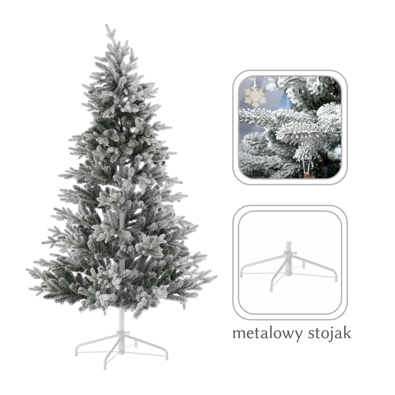 Umetna zasnežena smreka AGATA je odlična izbira za vse, ki iščejo slogovit in praktičen božični okras. Naravno oblikovane veje z belim ivjem ustvarjajo vtis sveže zasneženega drevesa, ki vašemu interierju doda praznično čarobnost brez odpadanja iglic.