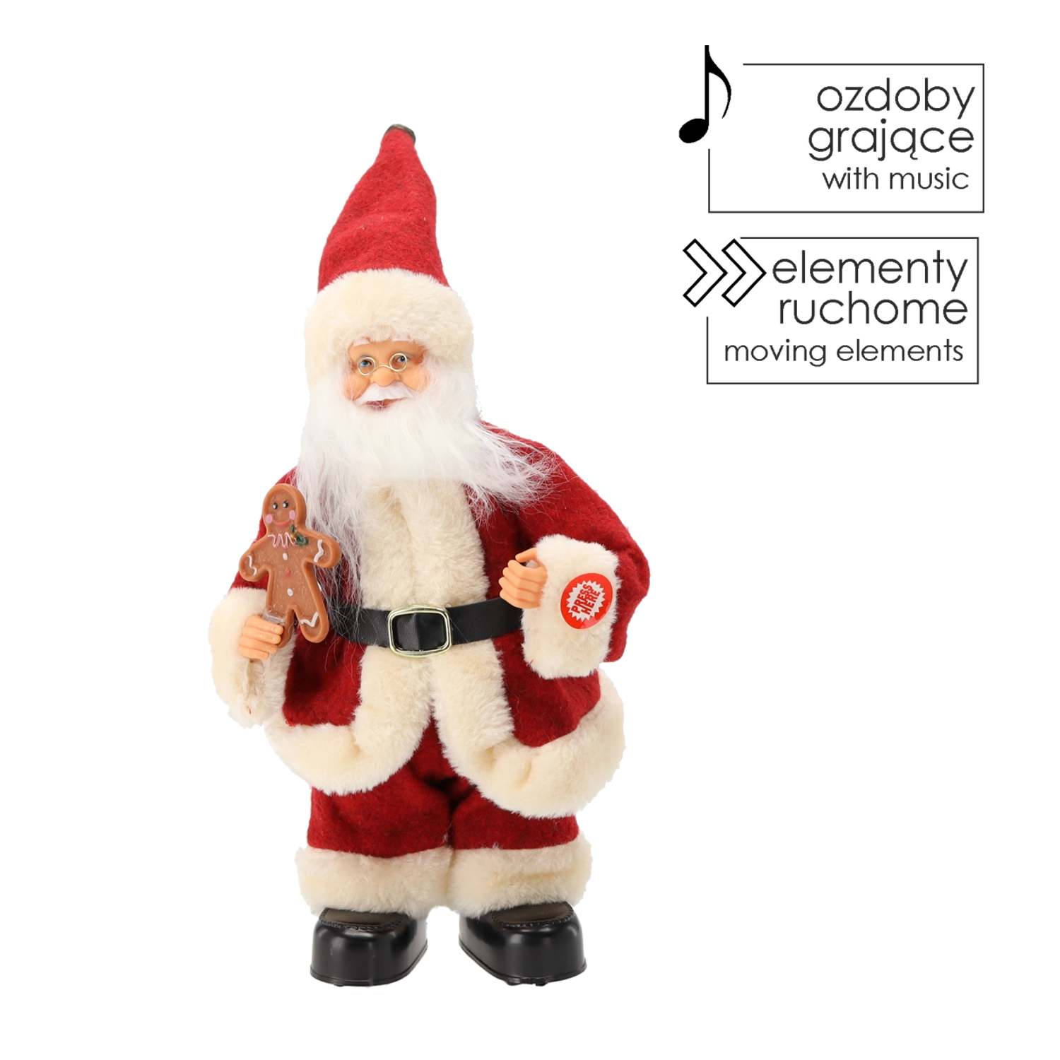 Plesoča božična figurica Božiček s medenjakom 30 cm
