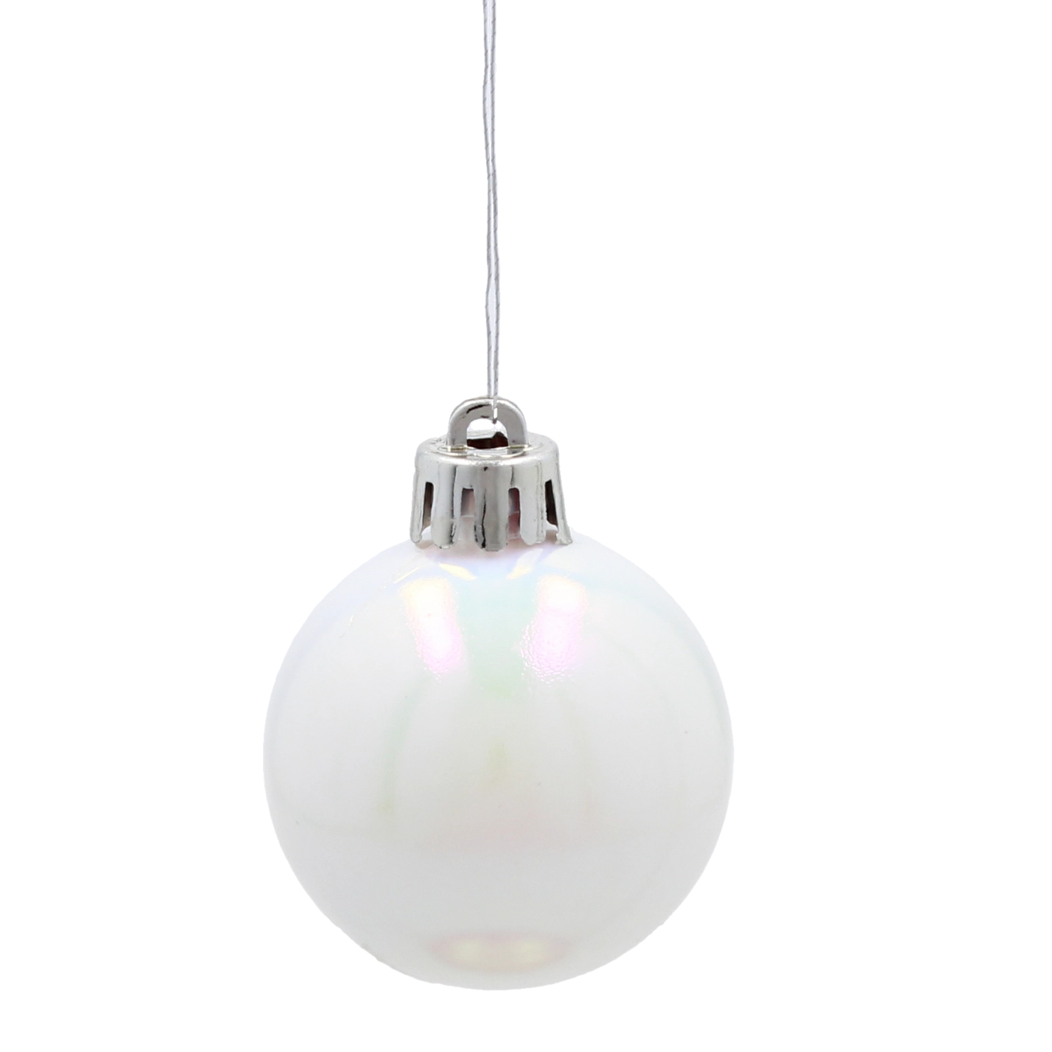Vsaka krogla je lahka in opremljena s kovinskim pokrovčkom z ušescem, zato jo hitro in zanesljivo namestite na veje, vence ali girlande.