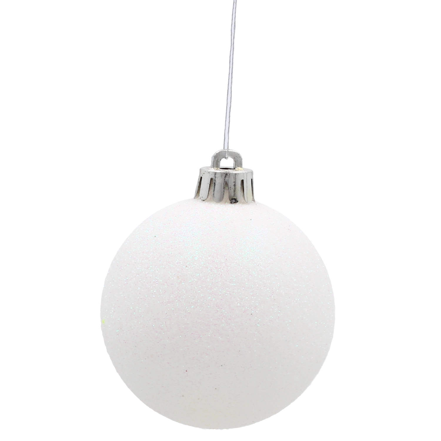 Eleganten set 16 božičnih okraskov s premerom 6 cm v kombinaciji bele in srebrne barve bo vašemu domu dodal sodobno praznično vzdušje. Okraski so izdelani iz lahke, trpežne in nelomljive plastike, zato so varni za gospodinjstva z otroki in hišnimi ljubljenčki. Idealni za božična drevesa, girlande, venčke in slavnostne aranžmaje.