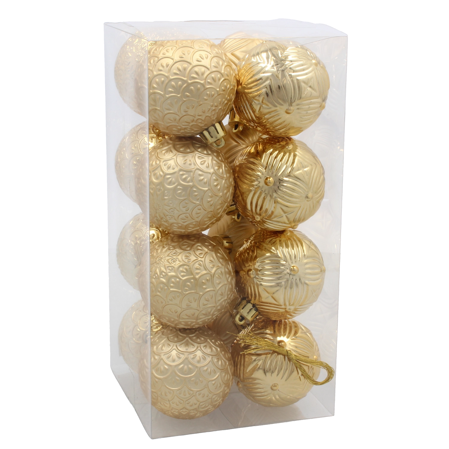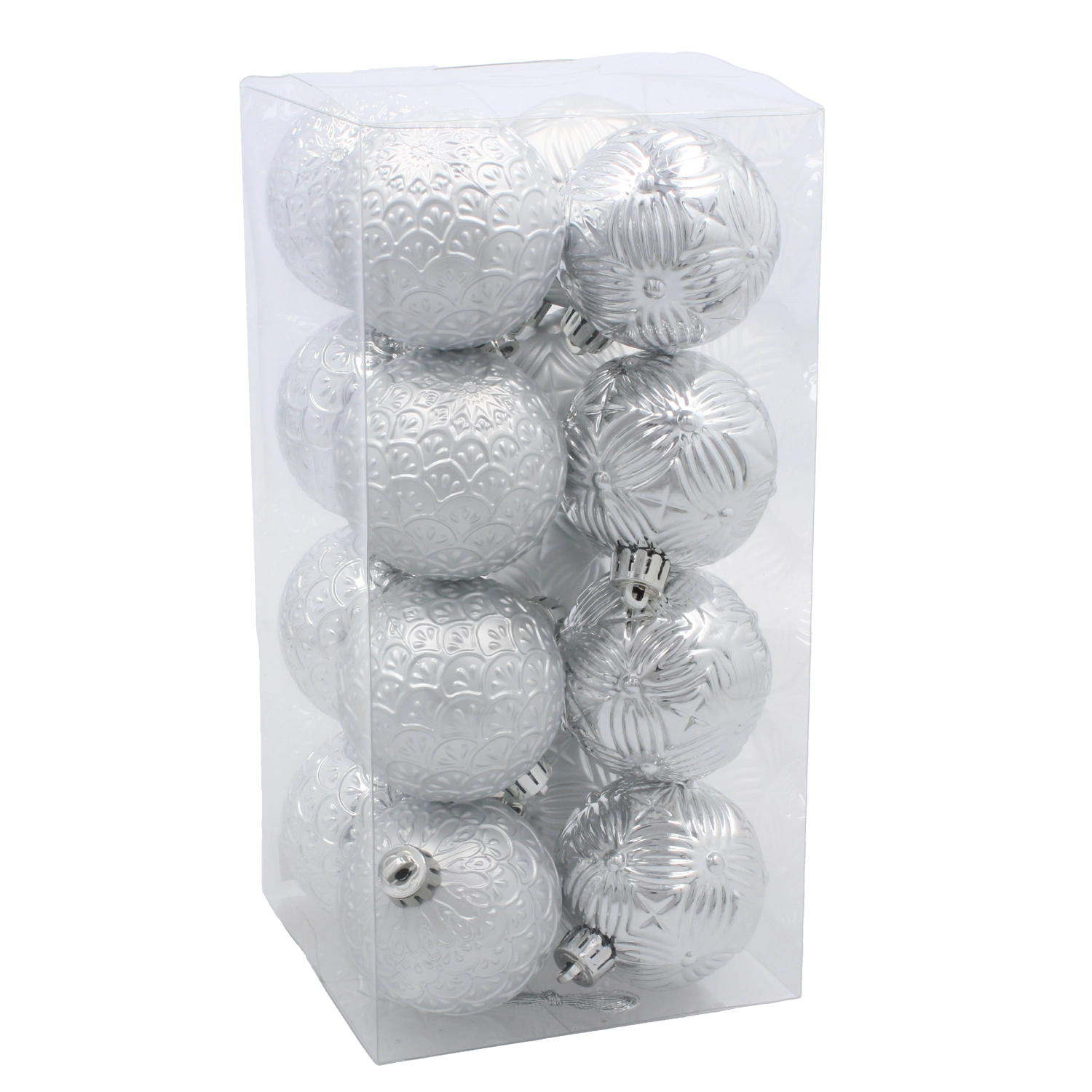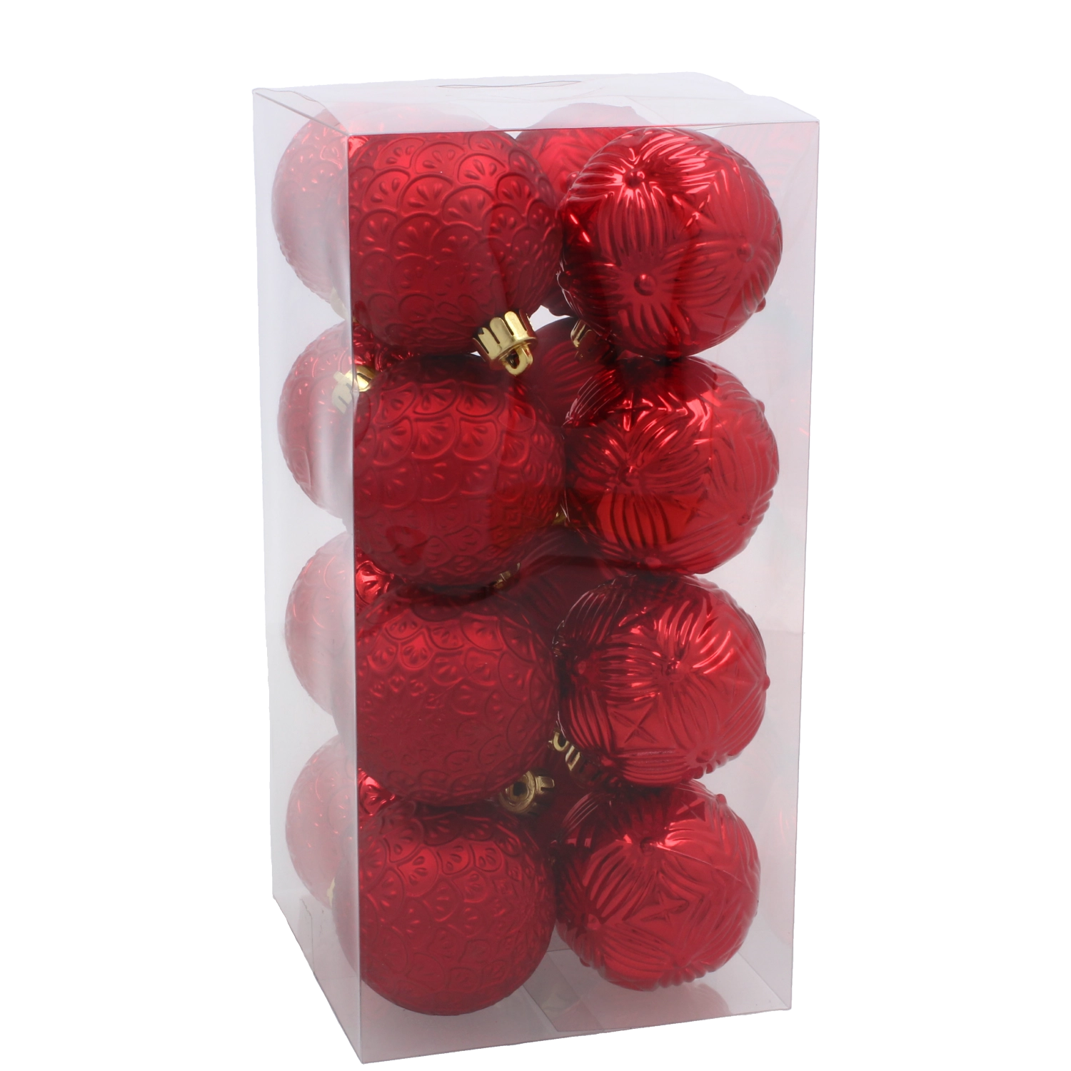 Eleganten set 16 božičnih krogel premera 6 cm v barvah rdeča, zlata in srebrna bo vašemu drevesu dodal edinstven sijaj. Trpežna plastična izvedba je nezlomljiva in varna za gospodinjstva z otroki in hišnimi ljubljenčki. Zaradi klasičnega dizajna, sijočih in reliefno okrašenih površin ter praktičnih vrvic za obešanje se odlično podajo k tradicionalnim in modernim dekoracijam in jih lahko vsako leto znova uporabljate.