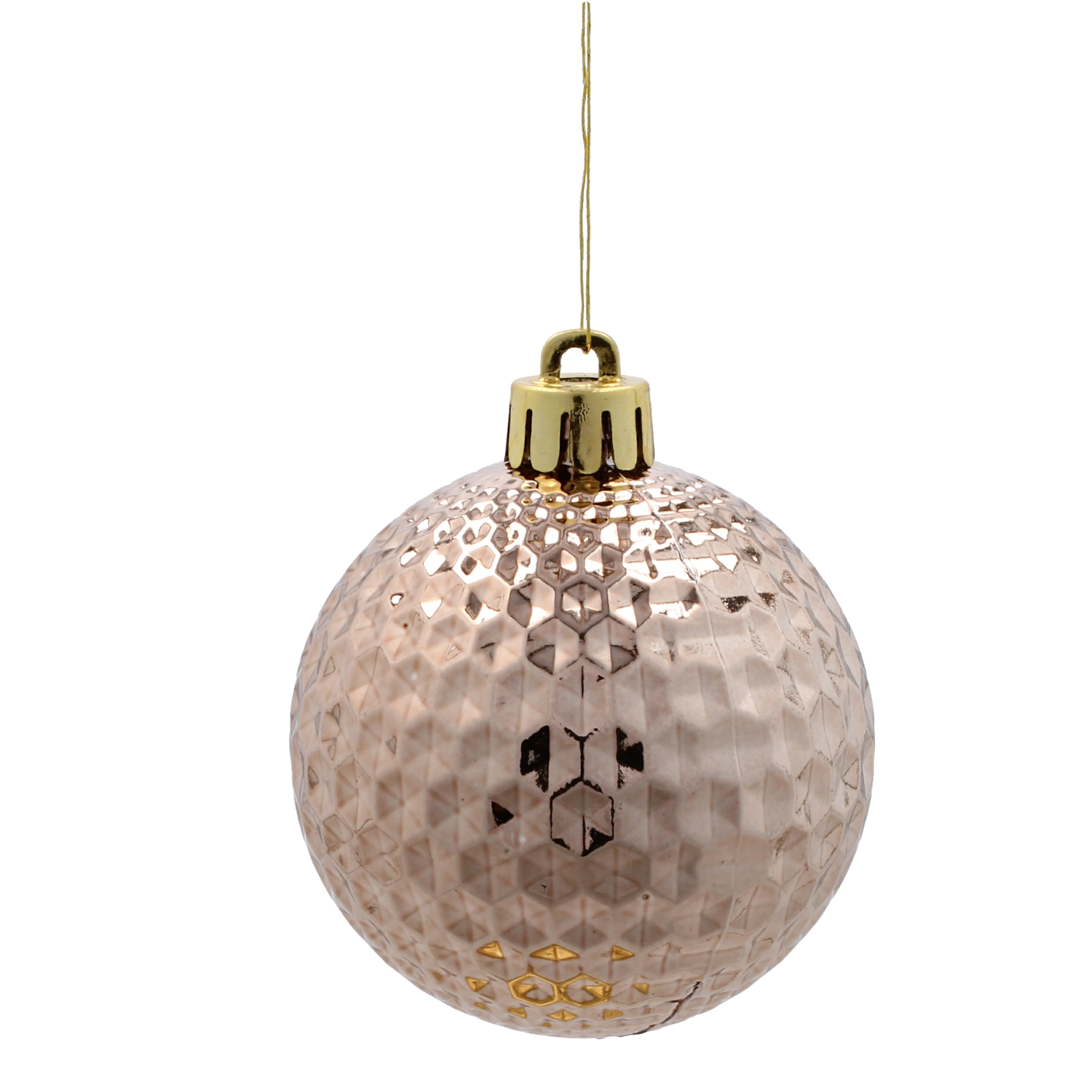 Ta stilski komplet božičnih okraskov ponuja harmonično povezavo granatno rdeče in bež zlate barve, ki skupaj ustvarjata brezčasen in eleganten videz. Krogle so izdelane iz kakovostne plastike, zato so odporne proti razbitju in hkrati zelo lahke za preprosto obešanje na veje kateregakoli drevesca.