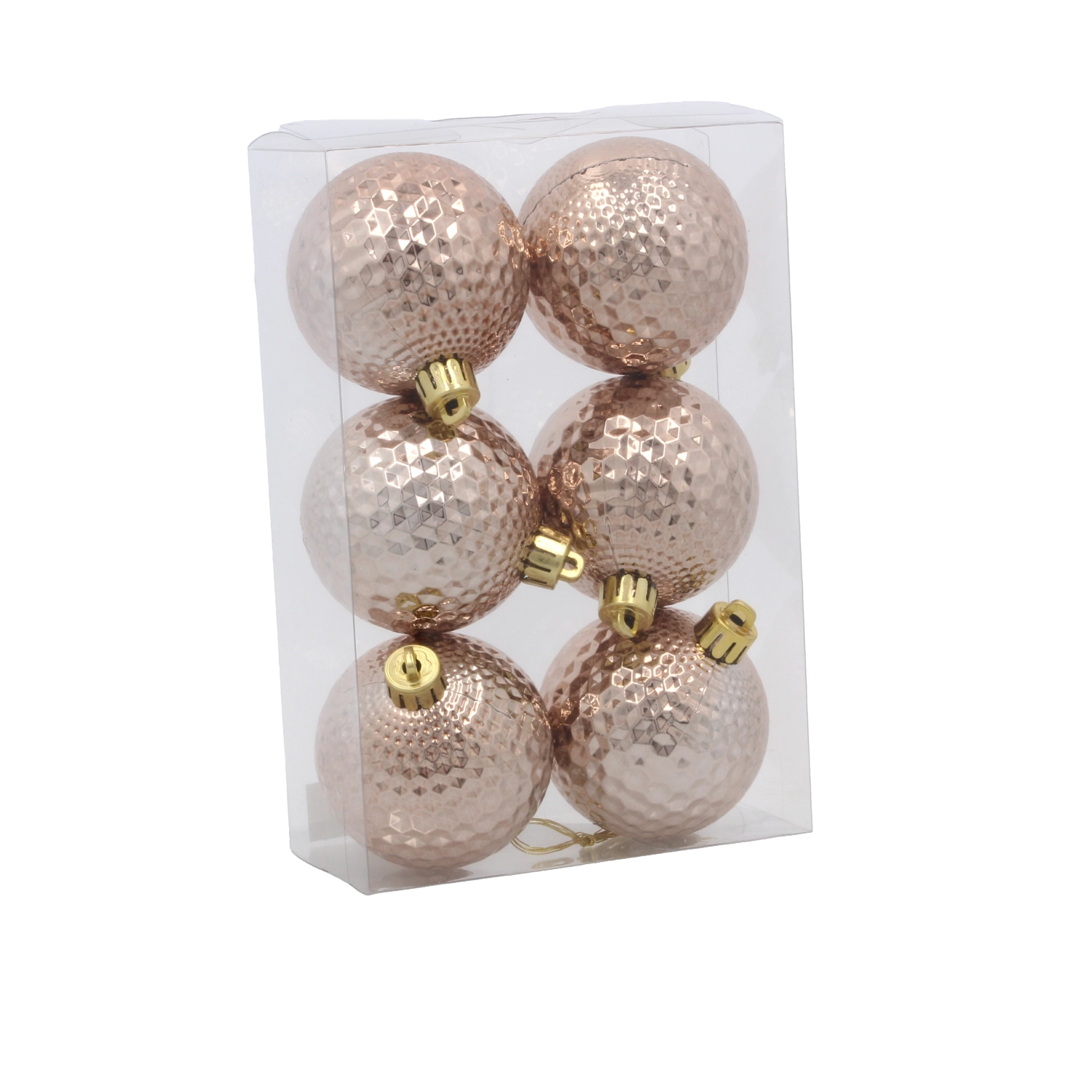 Komplet božičnih krogel 6 cm – granatno rdeča in bež zlata, 6 kos