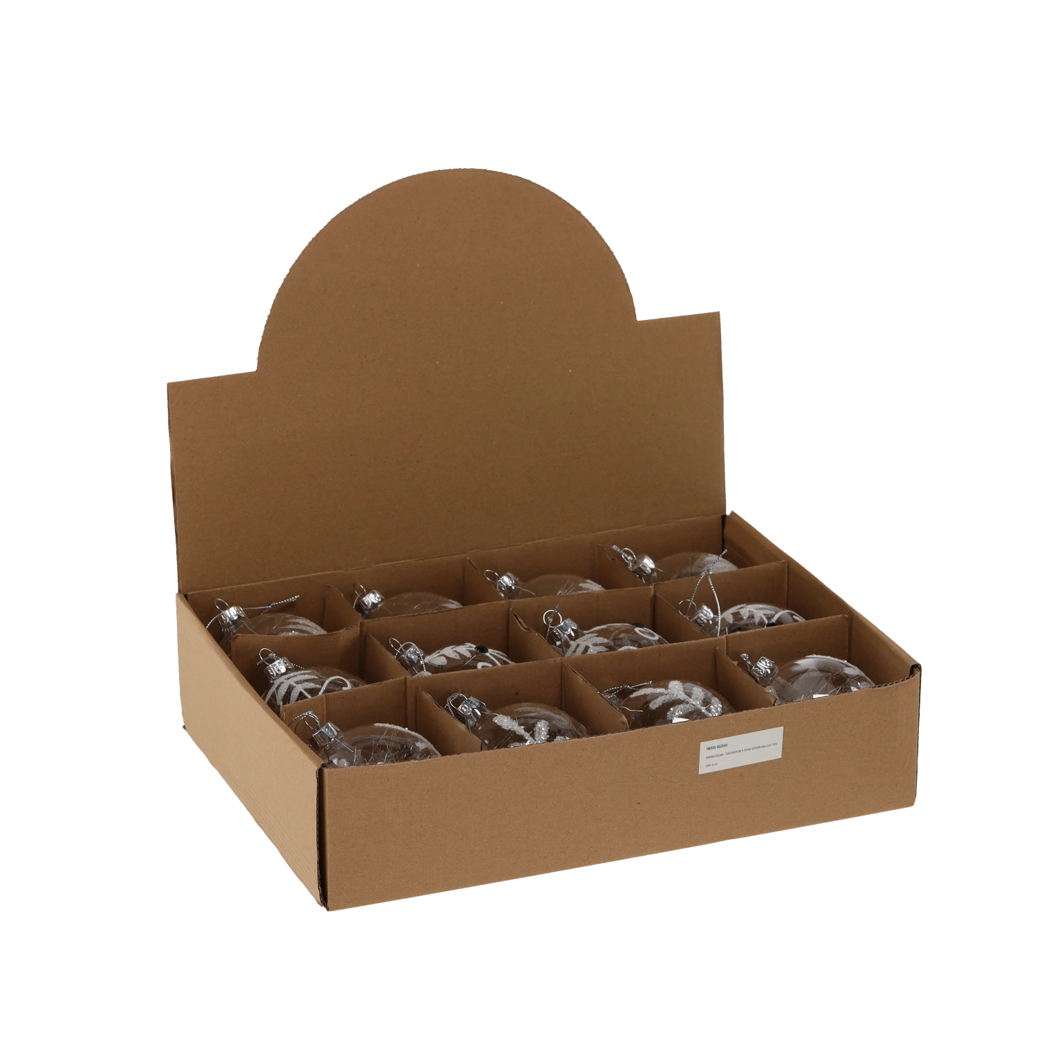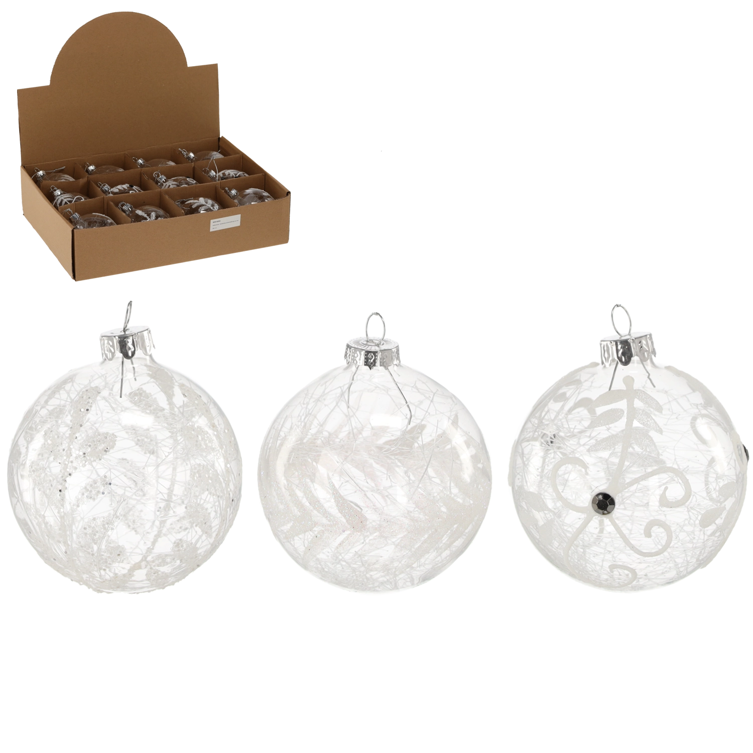 Steklena božična krogla 8 cm, prozorna, mešanica vzorcev (pakiranje 12 kos)