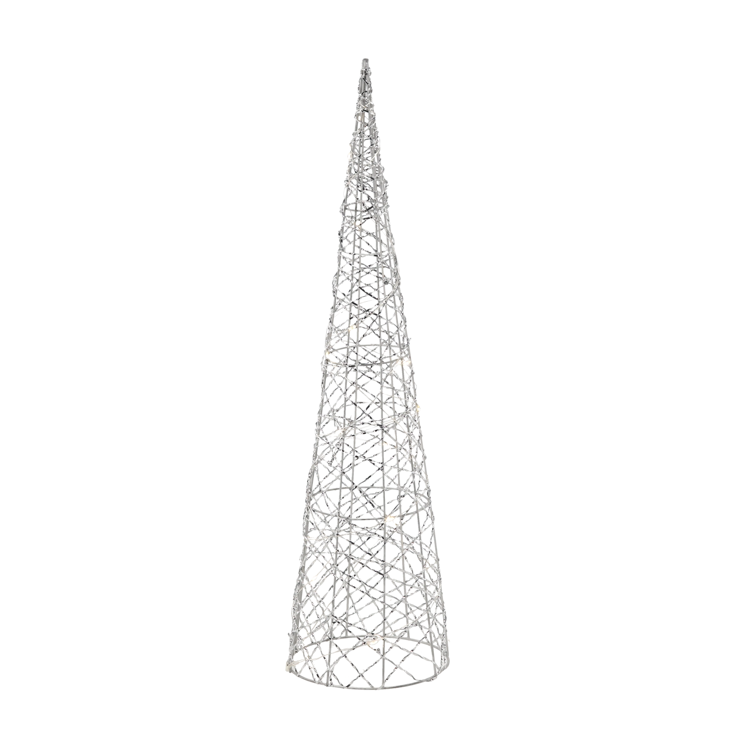 Stilska božična dekoracija v sodobni srebrni izvedbi je odlična za mizo, polico ali okensko polico. Stožčasta oblika in nežna topla svetloba 30 LED diod poudarita praznično razpoloženje v vsakem interierju. Zahvaljujoč baterijskemu napajanju niste omejeni z vtičnico in drevesce preprosto prestavite po potrebi.