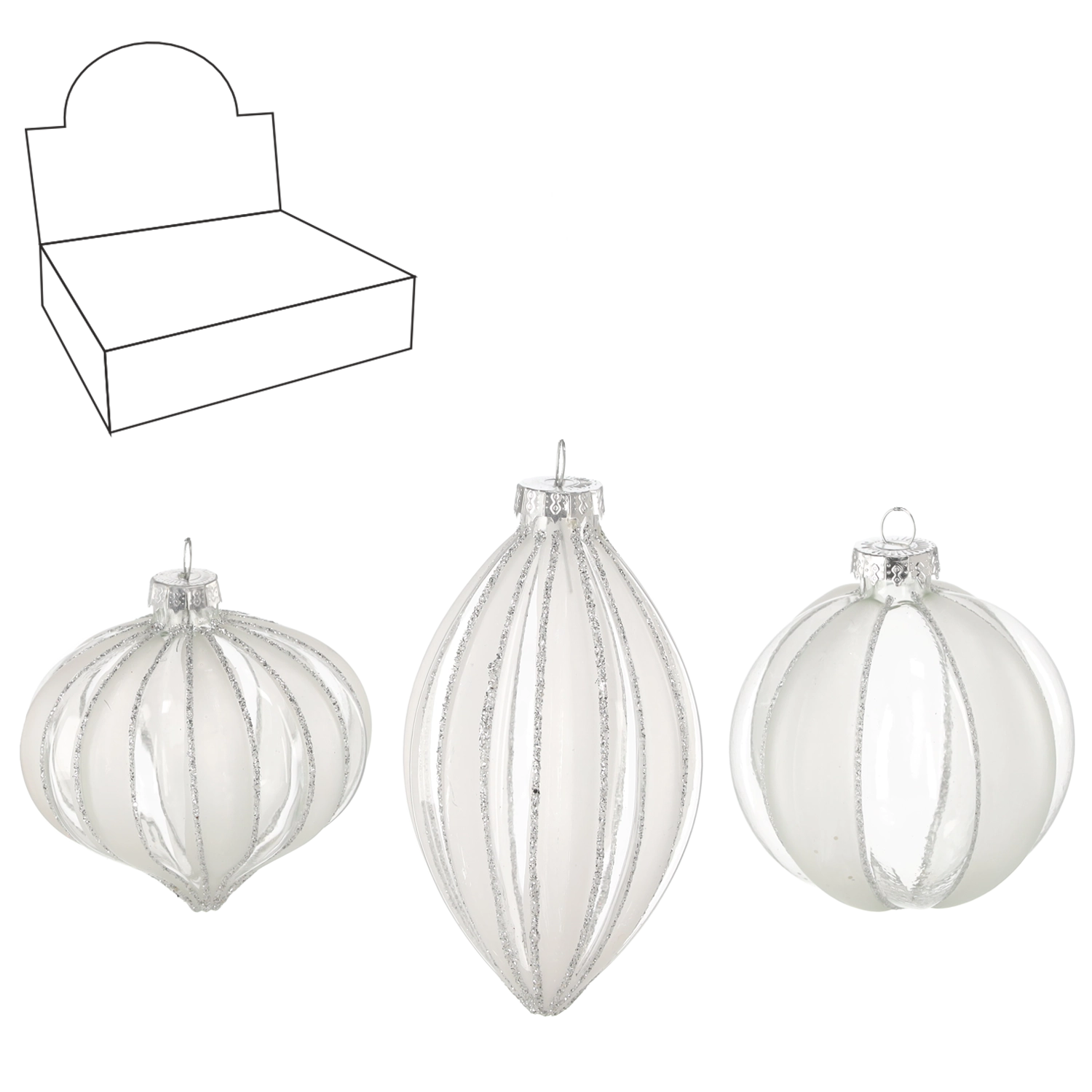 Ti prozorni stekleni okraski so idealna izbira za stilsko in okusno okraševanje božičnega drevesa. Združujejo diskreten sijaj z lahkotnostjo čistega stekla, zato čudovito odbijajo svetlobo lučk in ustvarjajo čarobno atmosfero v prostoru.