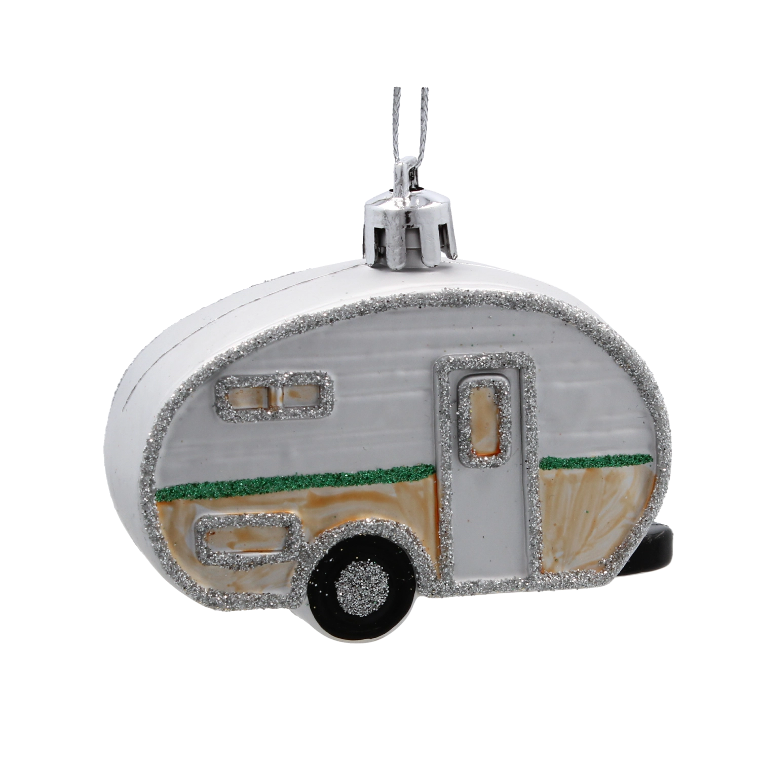 Fine linije, okenca in konture karavana z nežnim leskom poskrbijo za privlačen, prazničen videz dekoracije.
