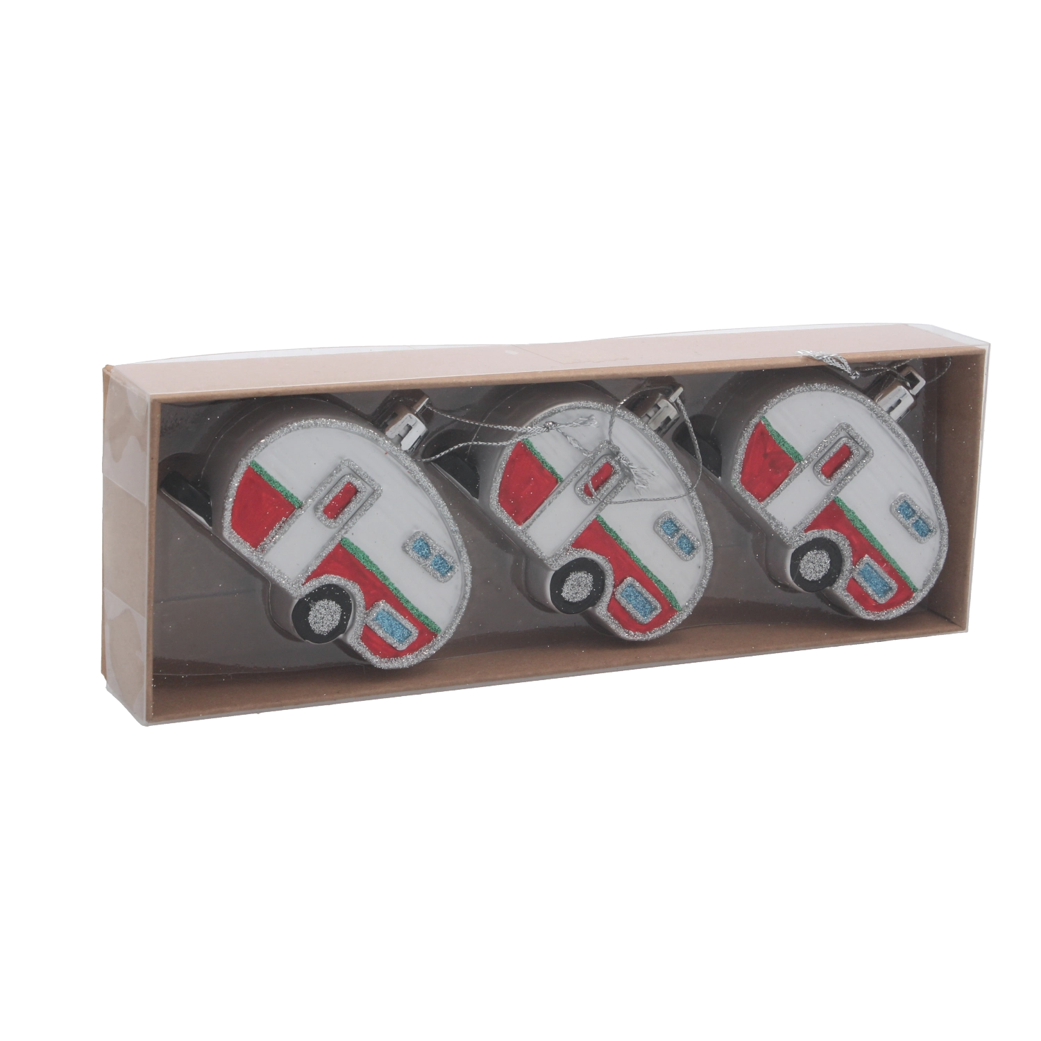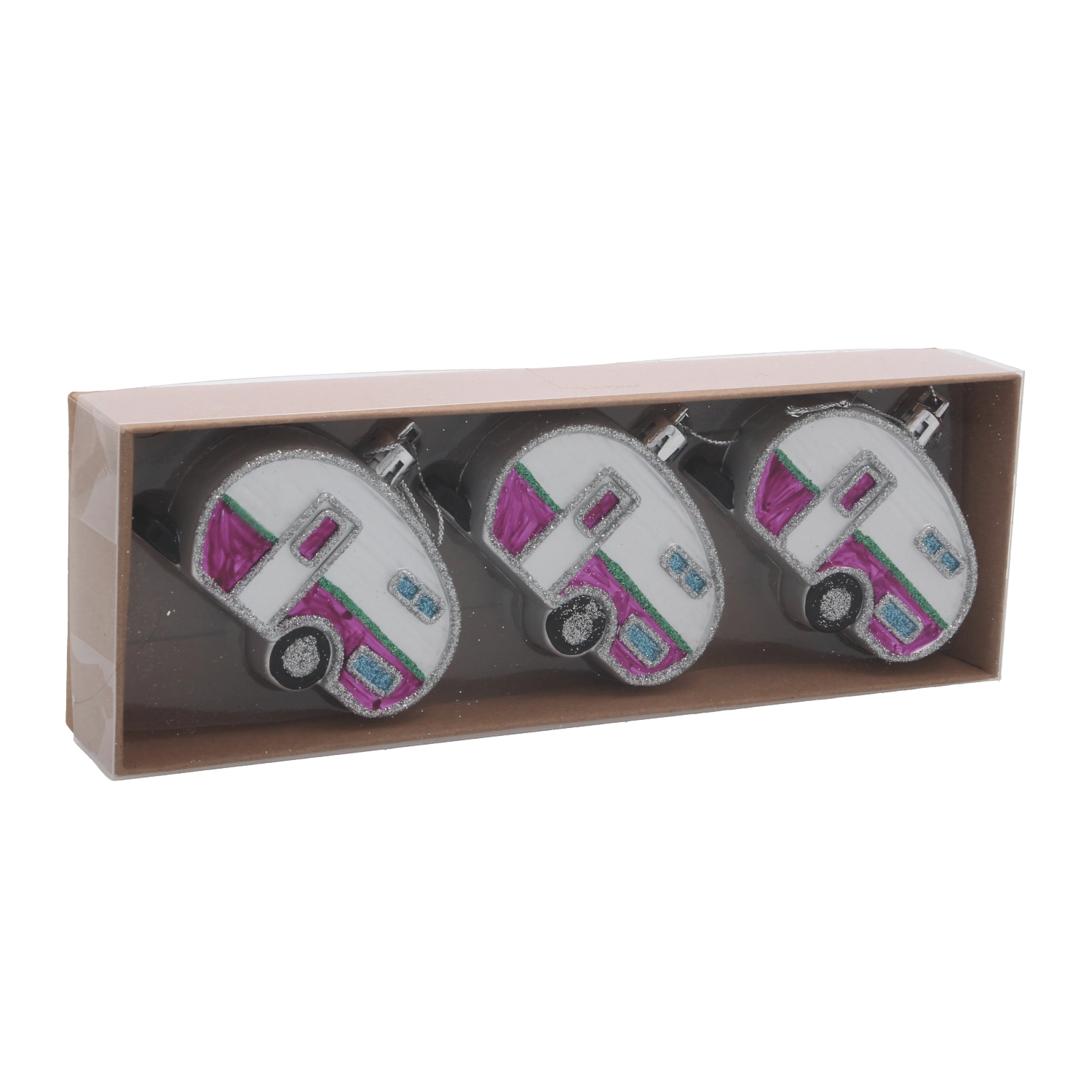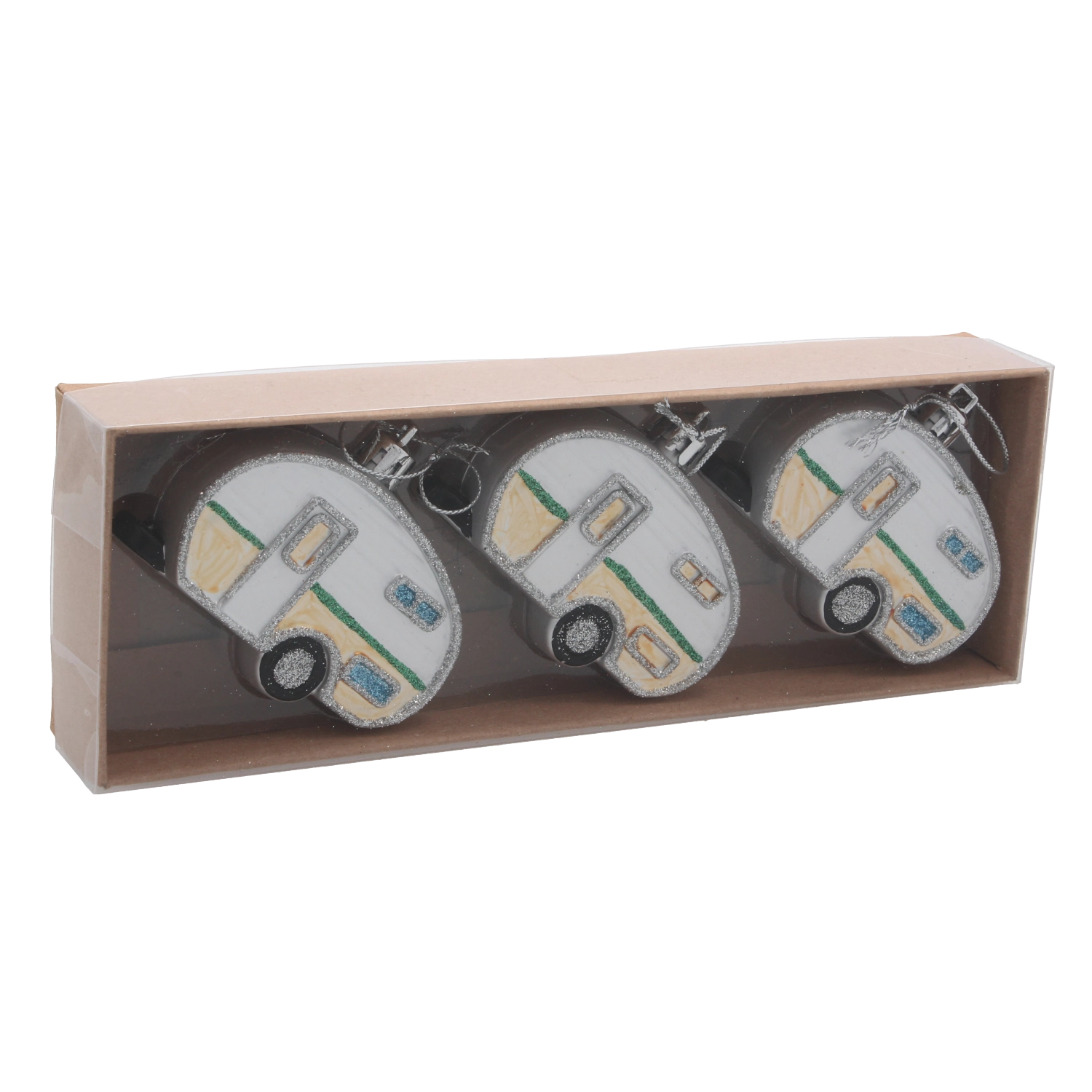 S tem izvirnim setom okraskov boste božičnemu drevescu dodali igriv retro pridih. Trije karavani v barvnem miksu izstopajo z realističnimi detajli in nežnim leskom, ki lepo odbija svetlobo sveč in LED verig. Zaradi nizke teže jih lahko obesite kamor koli, ne da bi po nepotrebnem obremenjevali veje.