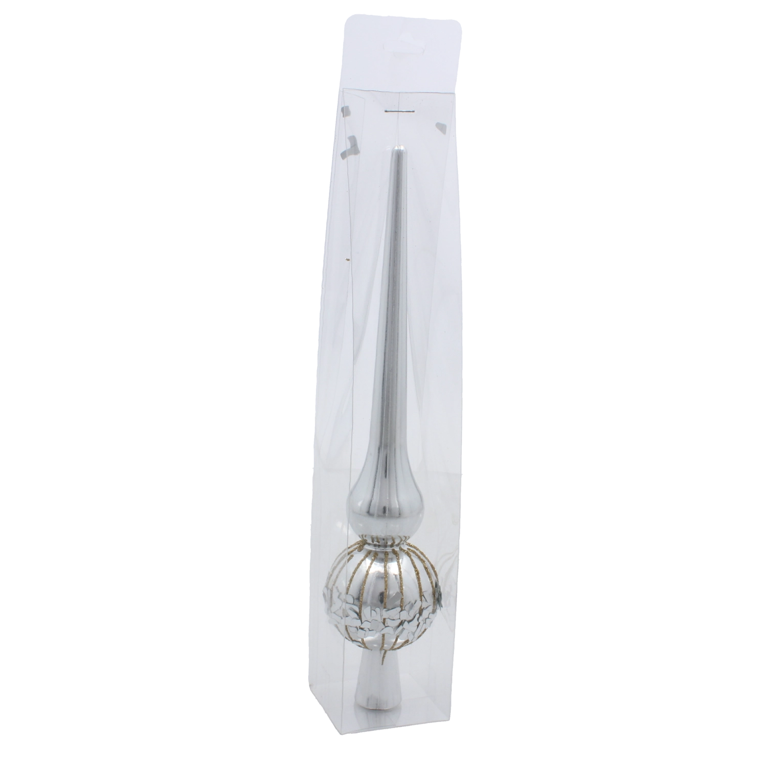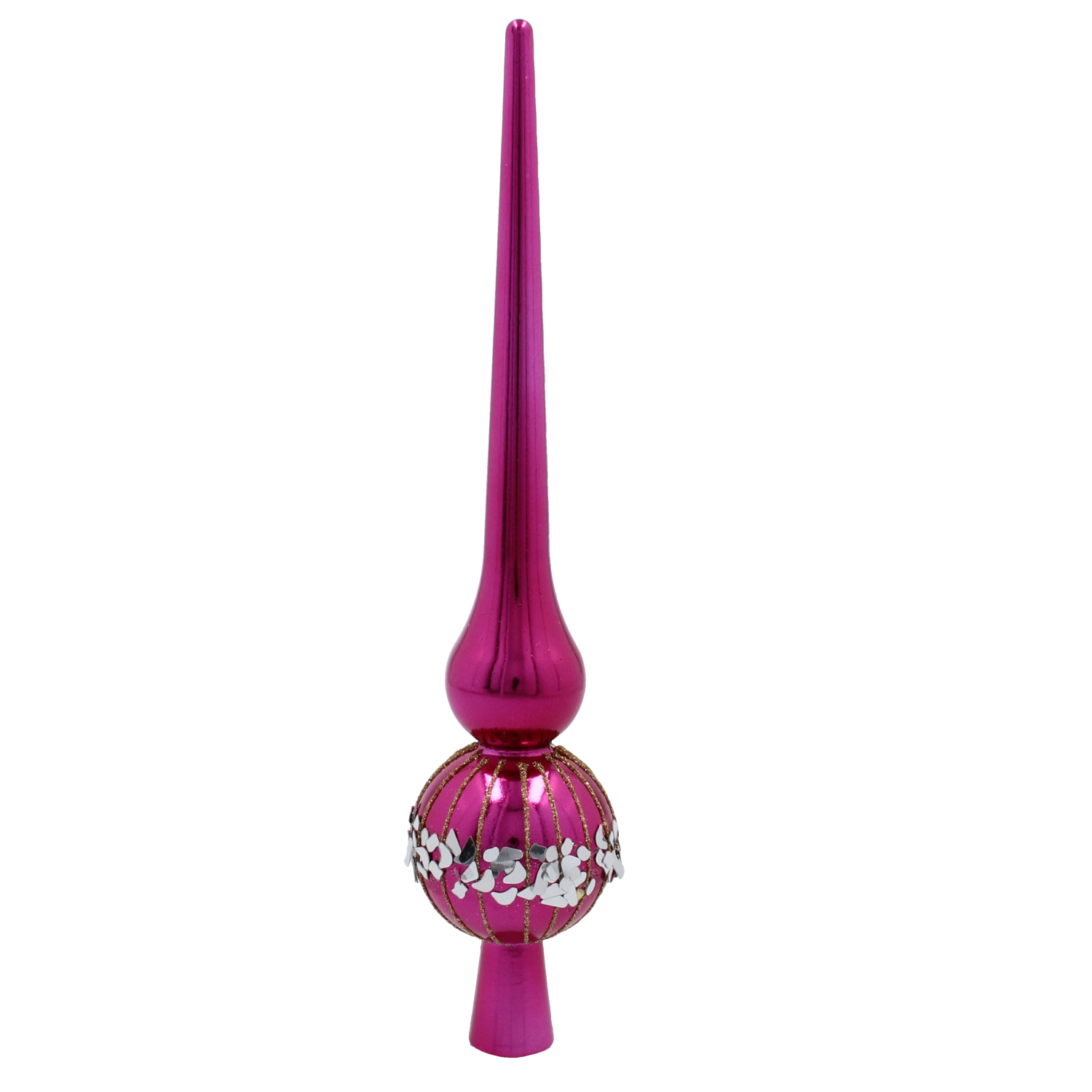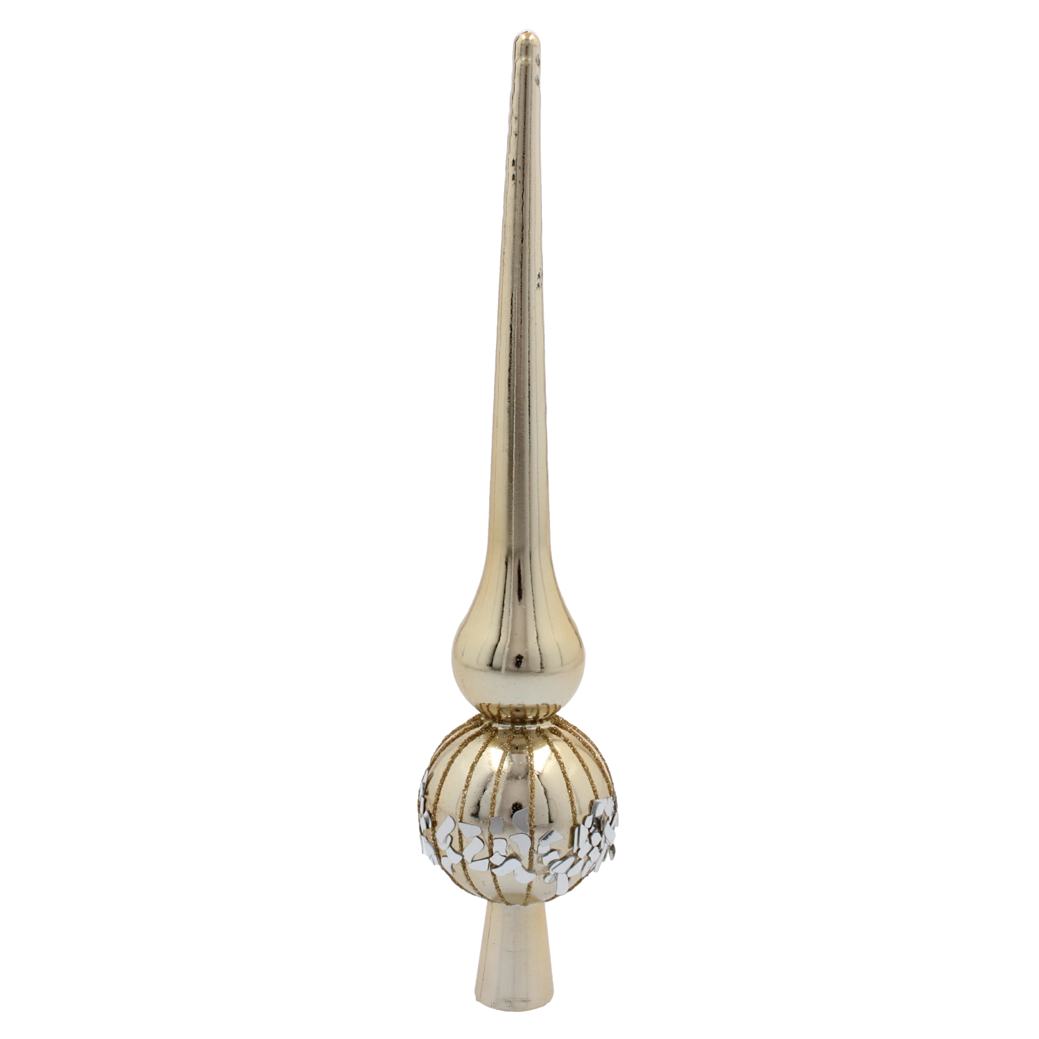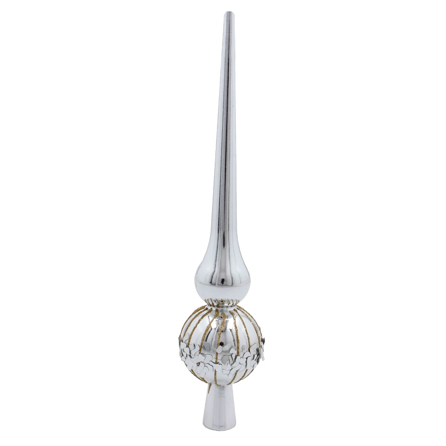 Svetleča površina in klasična silhueta konice dodata vašemu drevesu izrazit, a prefinjen poudarek, ki čudovito odbija luči svetlobnih verig.