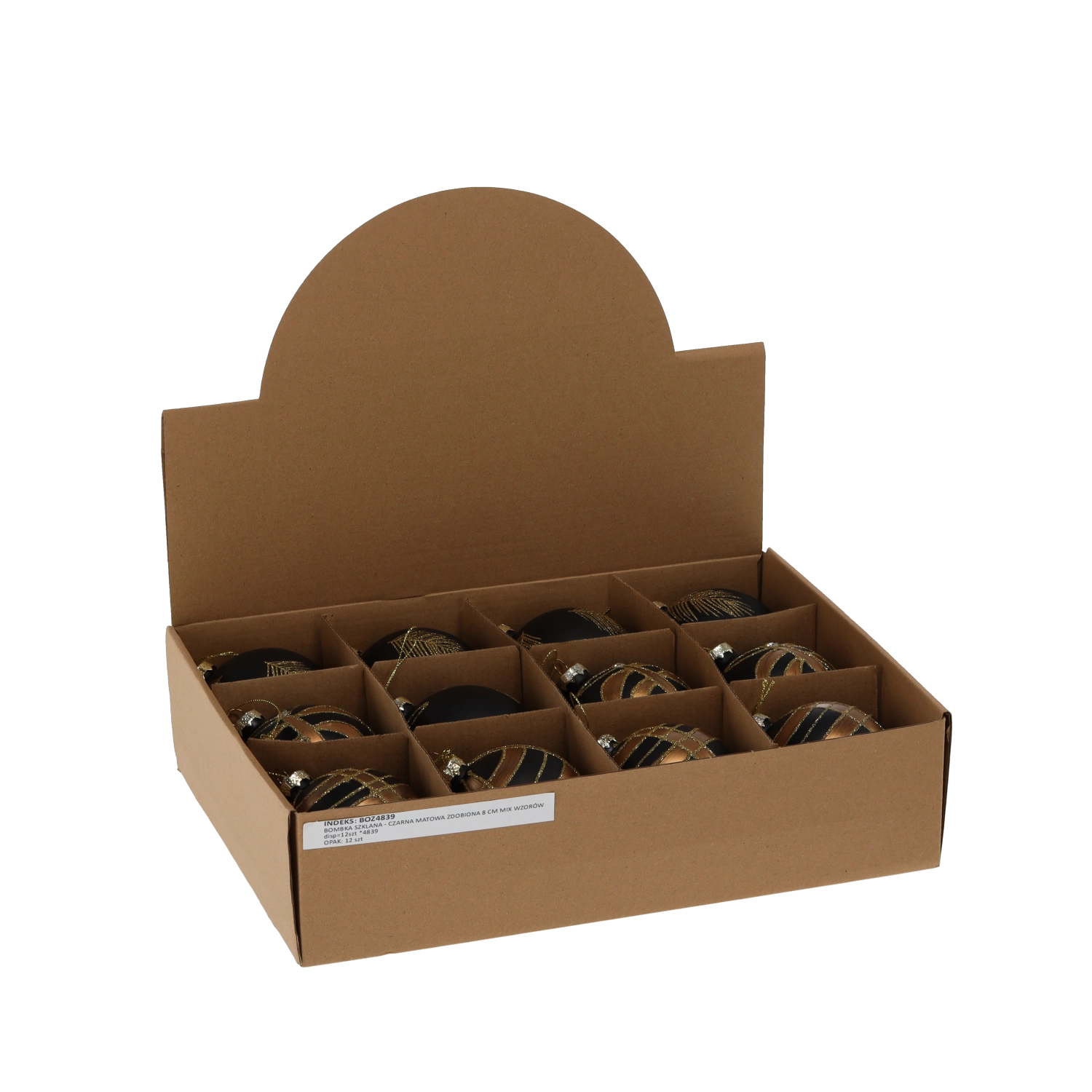Komplet vsebuje 12 kosov s premerom 8 cm, vsak z edinstveno dekoracijo za pestro in stilsko okrasitev. Zaradi enotne barvne palete izstopajo tako na klasičnem kot modernem drevesu in jih zlahka kombinirate z drugimi okraski.