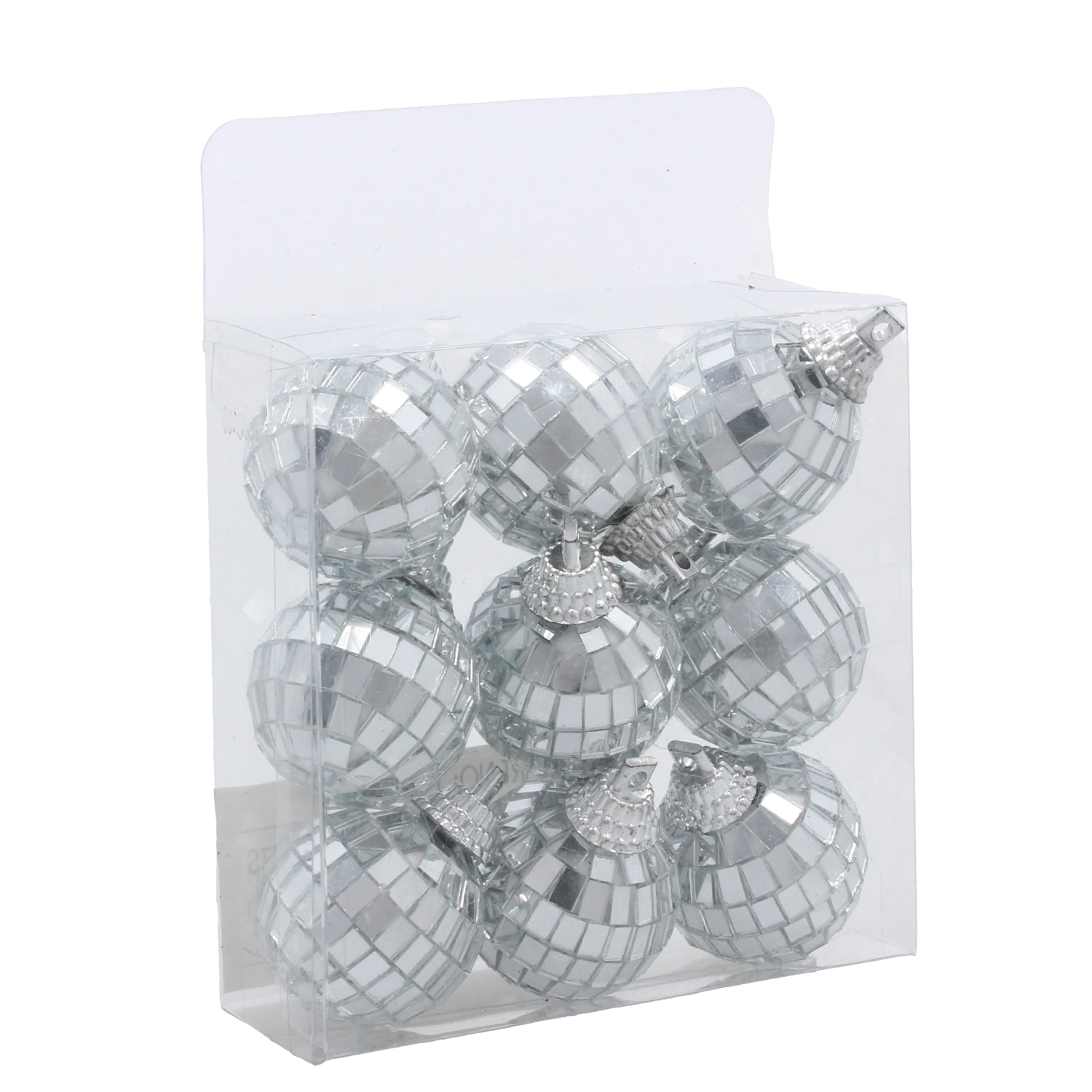 Dodajte praznični dekoraciji osupljiv sijaj in sodoben slog s kompletom devetih srebrnih disko krogel premera 3 cm. Lahek in nelomljiv plast zagotavlja varno okraševanje, medtem ko zrcalna površina čudovito odraža svetlobo in ustvarja bleščeč učinek na drevescu in v drugih aranžmajih. Vsaka krogla ima praktično vrvico za enostavno obešanje.