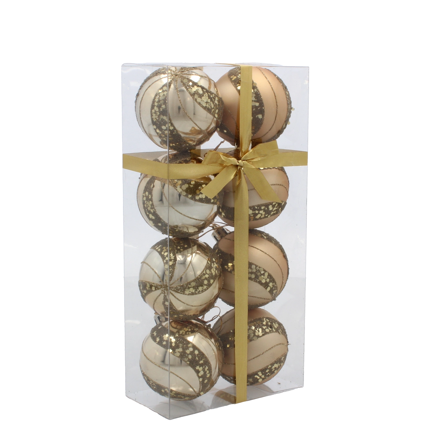 Z različnimi vzorci boste ustvarili domiselne kombinacije ter zlahka dosegli uravnotečen videz jelke ali drugih aranžmajev. Sijajne in dekorativno obdelane površine odbijajo svetlobo in vnesejo v prostor topel zlat pridih.